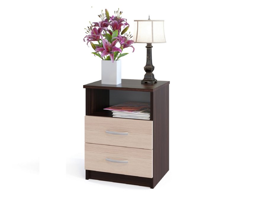 Универсальная тумба КТ-09.1 подойдет для хранения канцелярских принадлежностей в кабинете или станет прикроватной тумбой в спальне. Тумба имеет открытую нишу и два выдвижных ящика.
