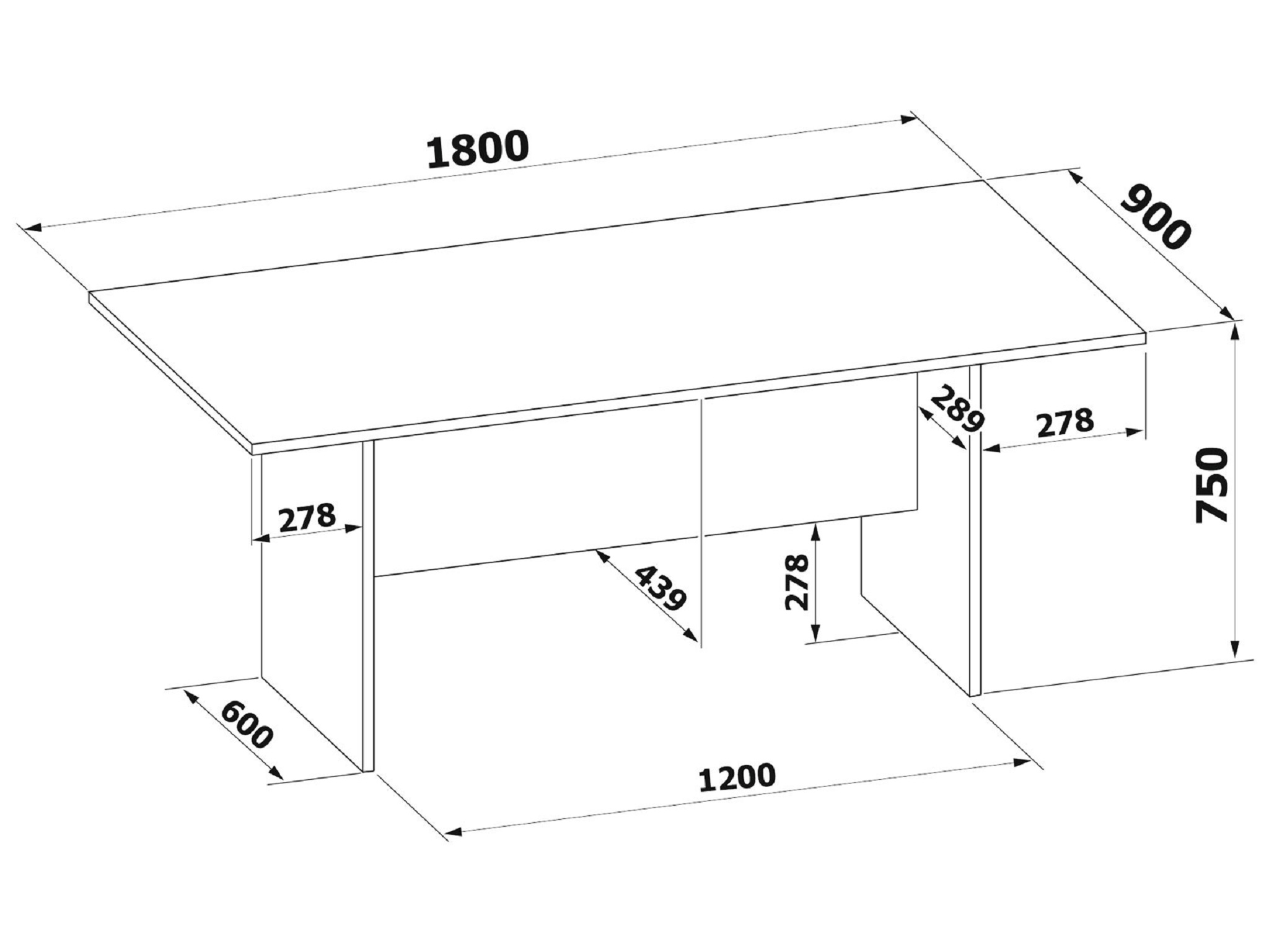 Размеры стола: В-750 мм, Ш-1800 мм, Г-900 мм.