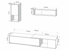 Конструкция гостиной «Флип» включает в себя два навесных и один – напольный – ящики.