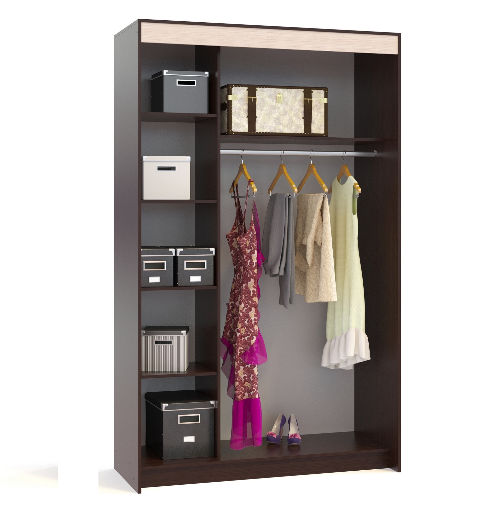 Широкий шкаф-купе подойдет для прихожей или спальни. Оснащен шкаф штангой для одежды, гардеробной полкой и 4-мя съемными полками.