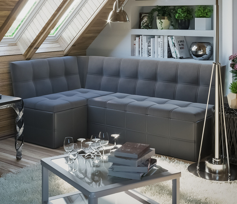 Отзывы о Столплит Скамья угловая со спальным местом Домино исп. 2 (велюр/кожзам) Серый