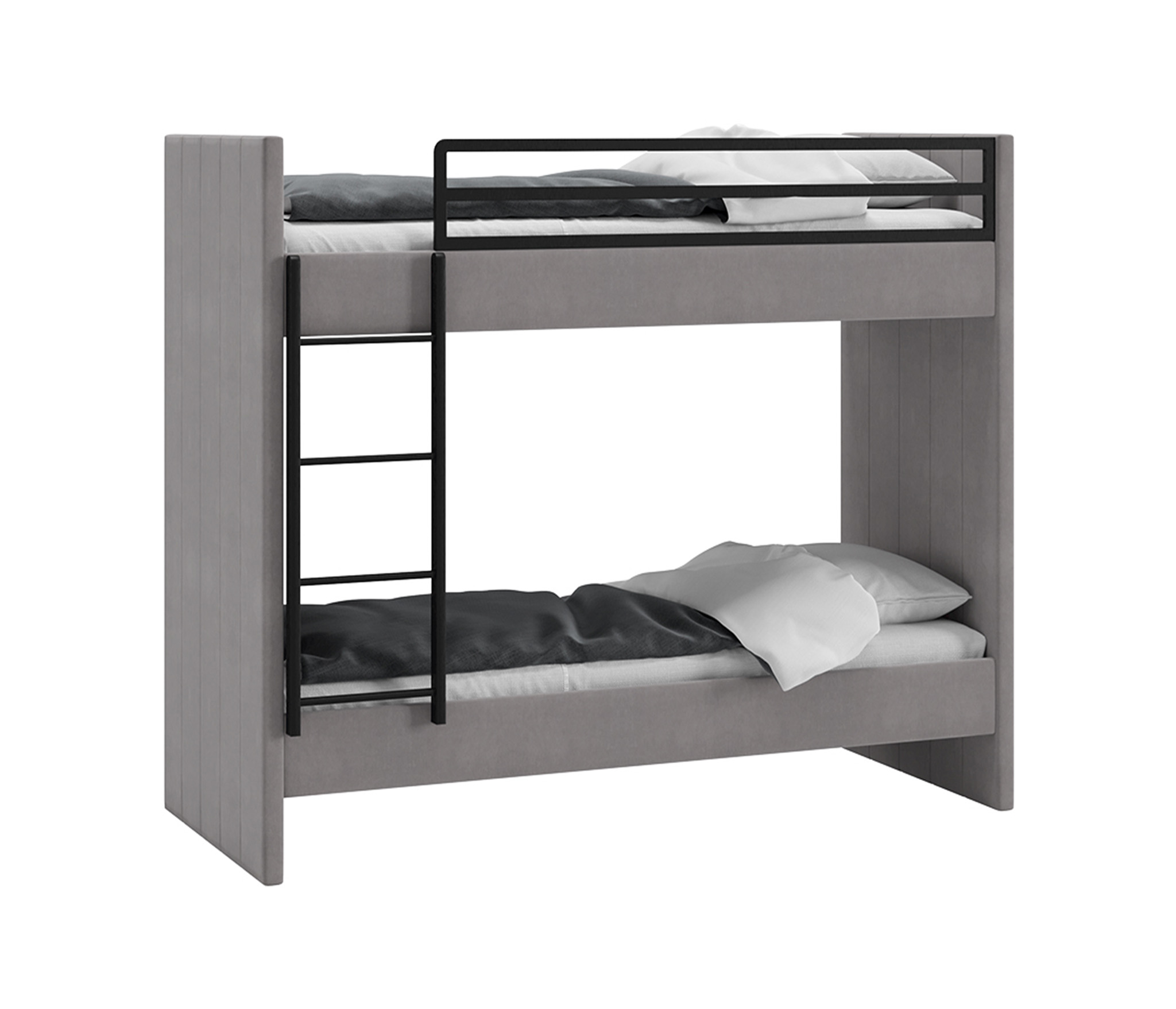 Кровать двухъярусная с мягкой обивкой Дарси (Светло-серый)