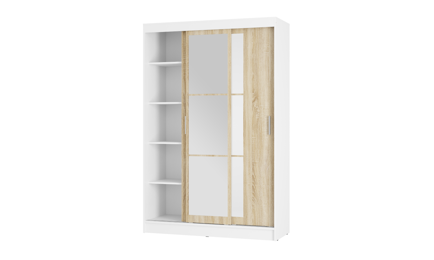 Зеркальные фасады визуально увеличивают пространство комнаты, делая её более светлой и просторной, что особенно важно для небольших помещений. Максимальная нагрузка до 10 кг на полку и штангу обеспечивает надёжное хранение ваших вещей, не опасаясь перегрузки.