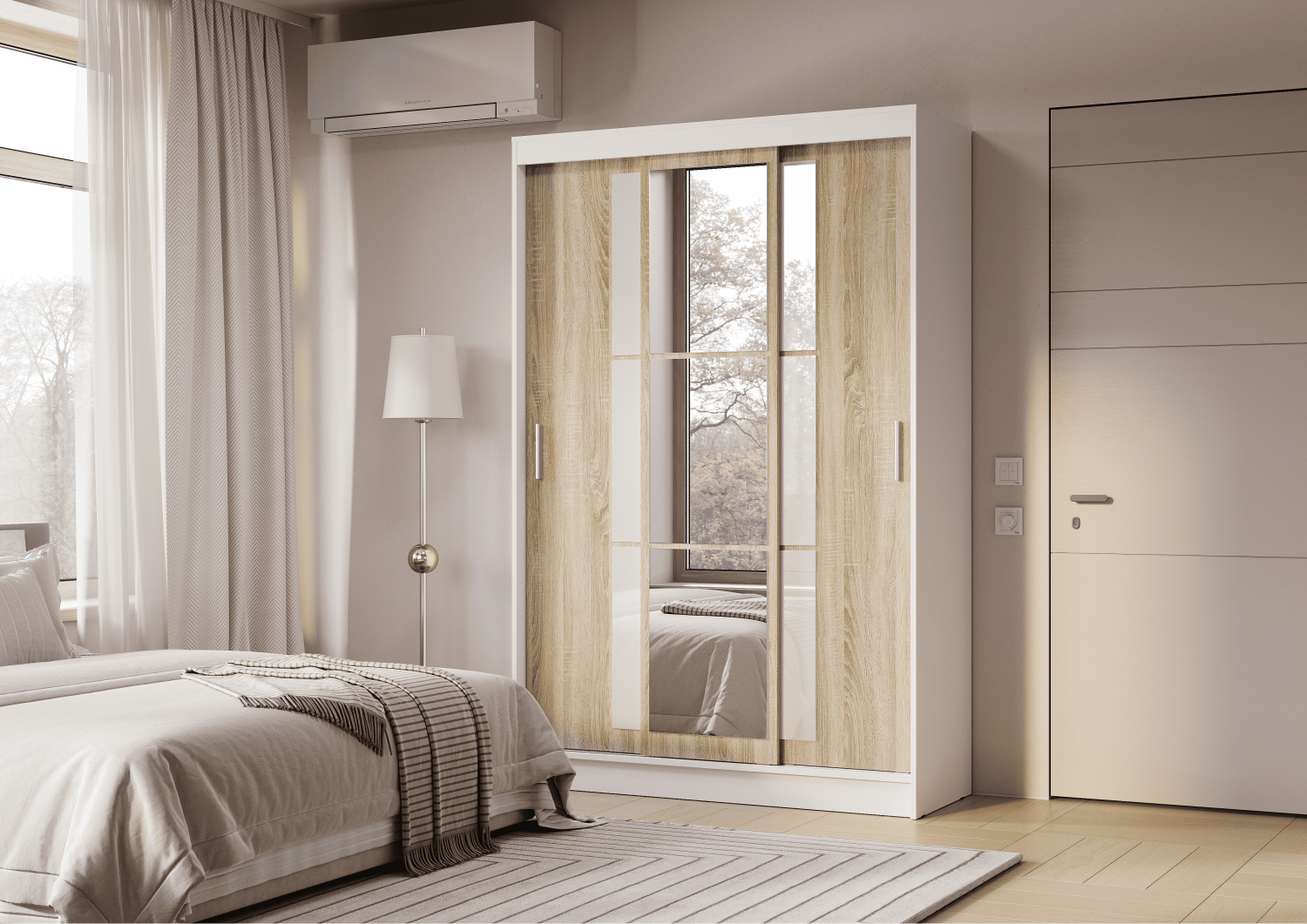 Шкаф-купе "Денвер" ШКК-03 идеально подходит как для спальни, так и для гостиной, благодаря своему элегантному дизайну и многофункциональности. Стильное и лаконичное оформление составляет гармонию с любым интерьером, добавляя ему современный акцент.