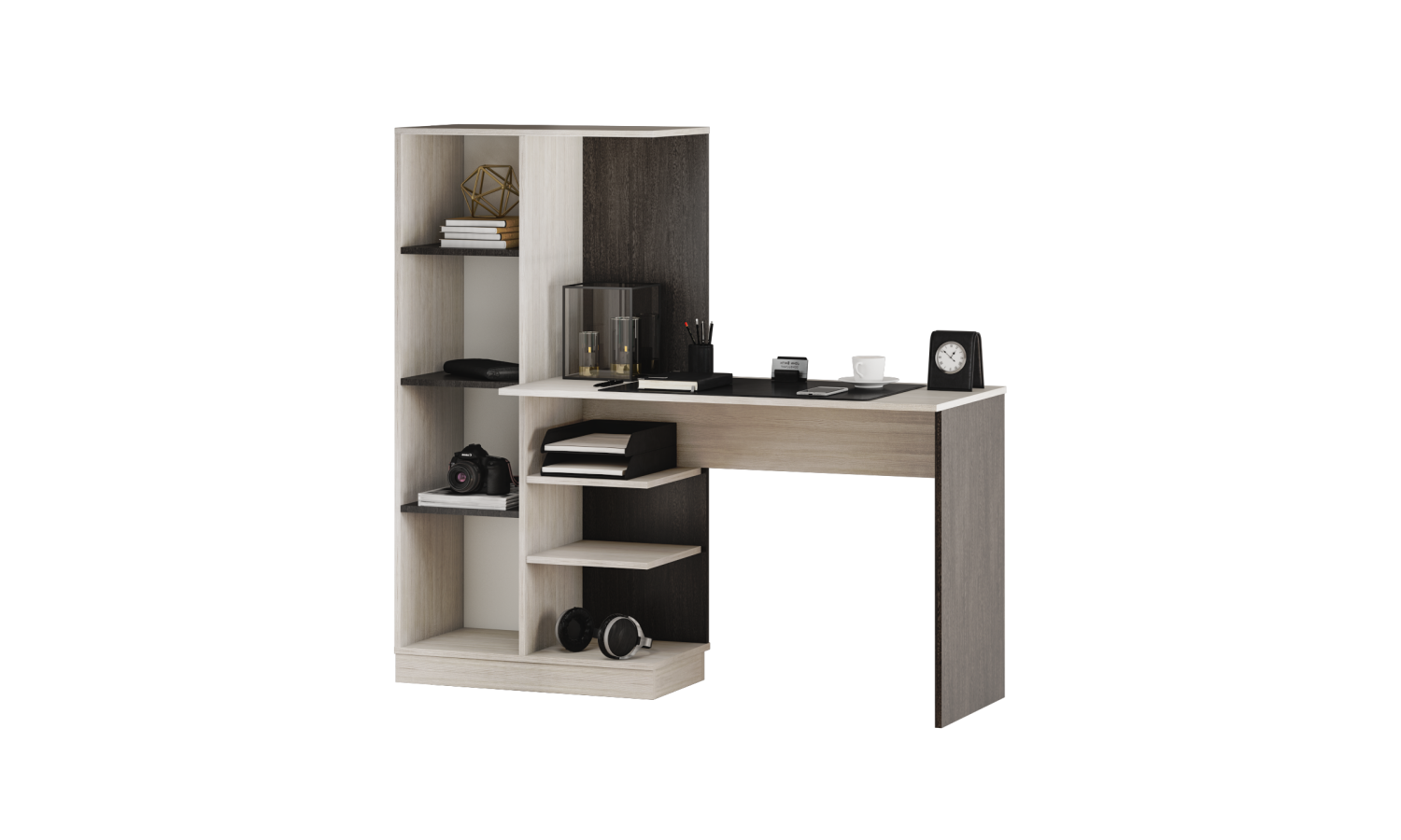 Кроме того, стол "Бейсик" оснащен двумя открытыми полками, которые находятся на оптимальном уровне, позволяя легко доставать необходимые вещи без лишних усилий. Эти полки можно использовать для размещения книг, декоративных элементов или электронных устройств, таких как принтер или планшет. Они также способствуют хорошей организации рабочего пространства, обеспечивая легкий доступ к часто используемым предметам.