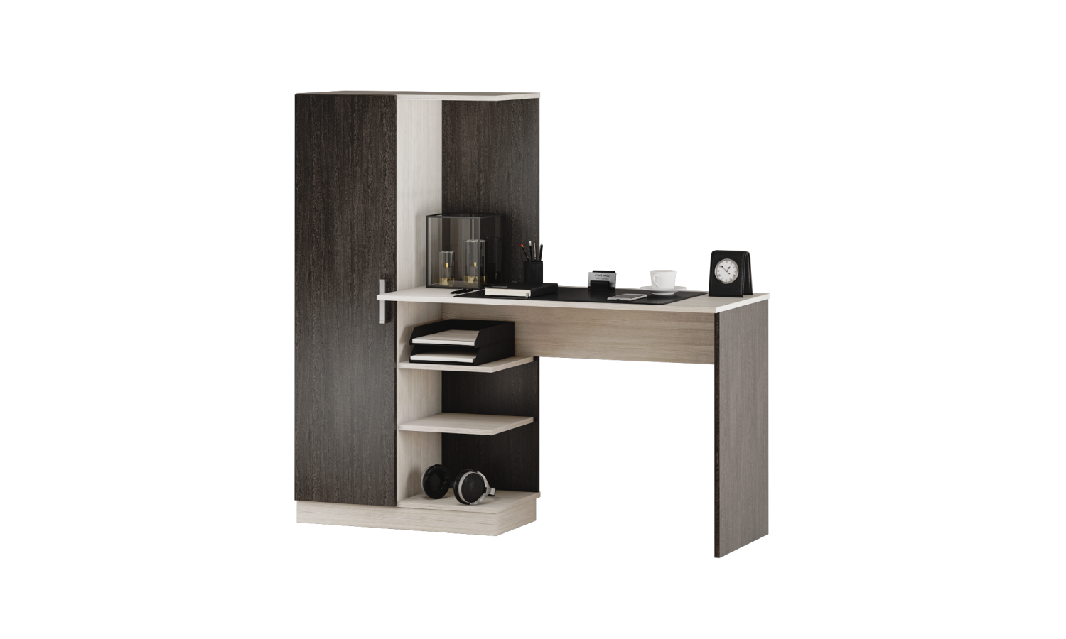 Небольшой пенал с распашной дверцей предоставляет удобное и скрытое пространство для хранения канцтоваров, учебников или рабочих документов. Эта функция помогает избежать ощущения загроможденности и поддерживает аккуратный вид стола.