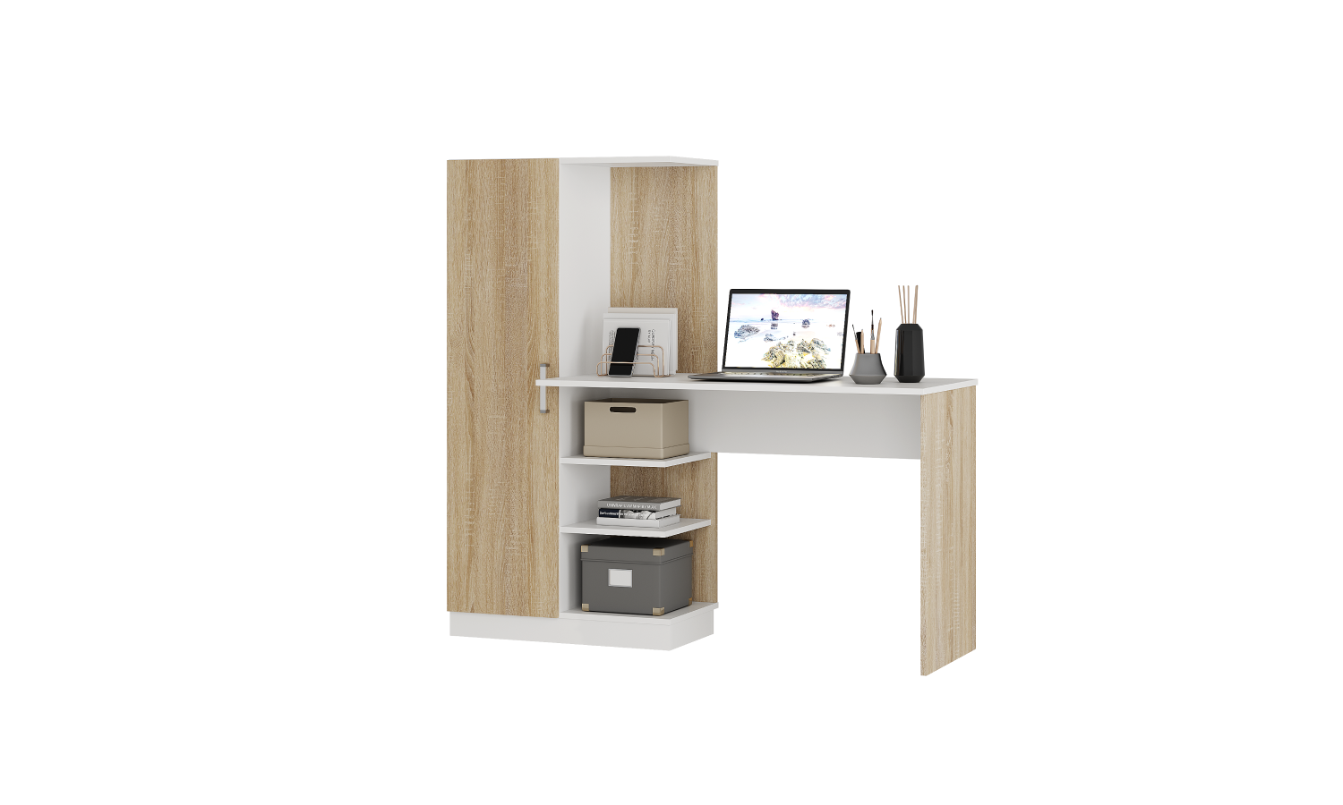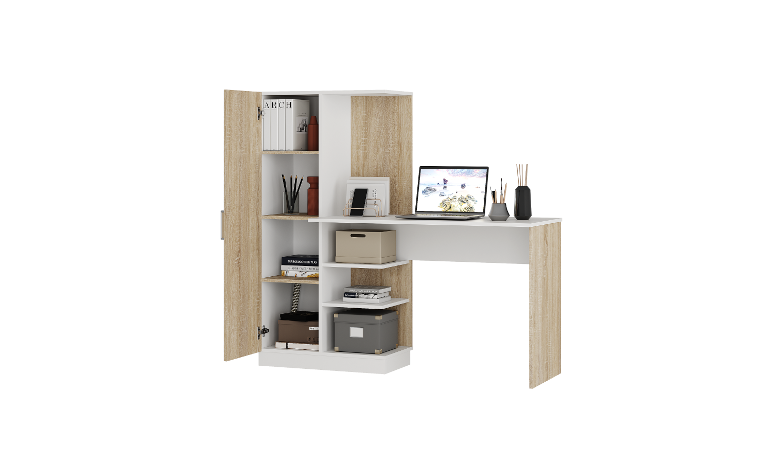 Небольшой пенал с распашной дверцей предоставляет удобное и скрытое пространство для хранения канцтоваров, учебников или рабочих документов. Эта функция помогает избежать ощущения загроможденности и поддерживает аккуратный вид стола.