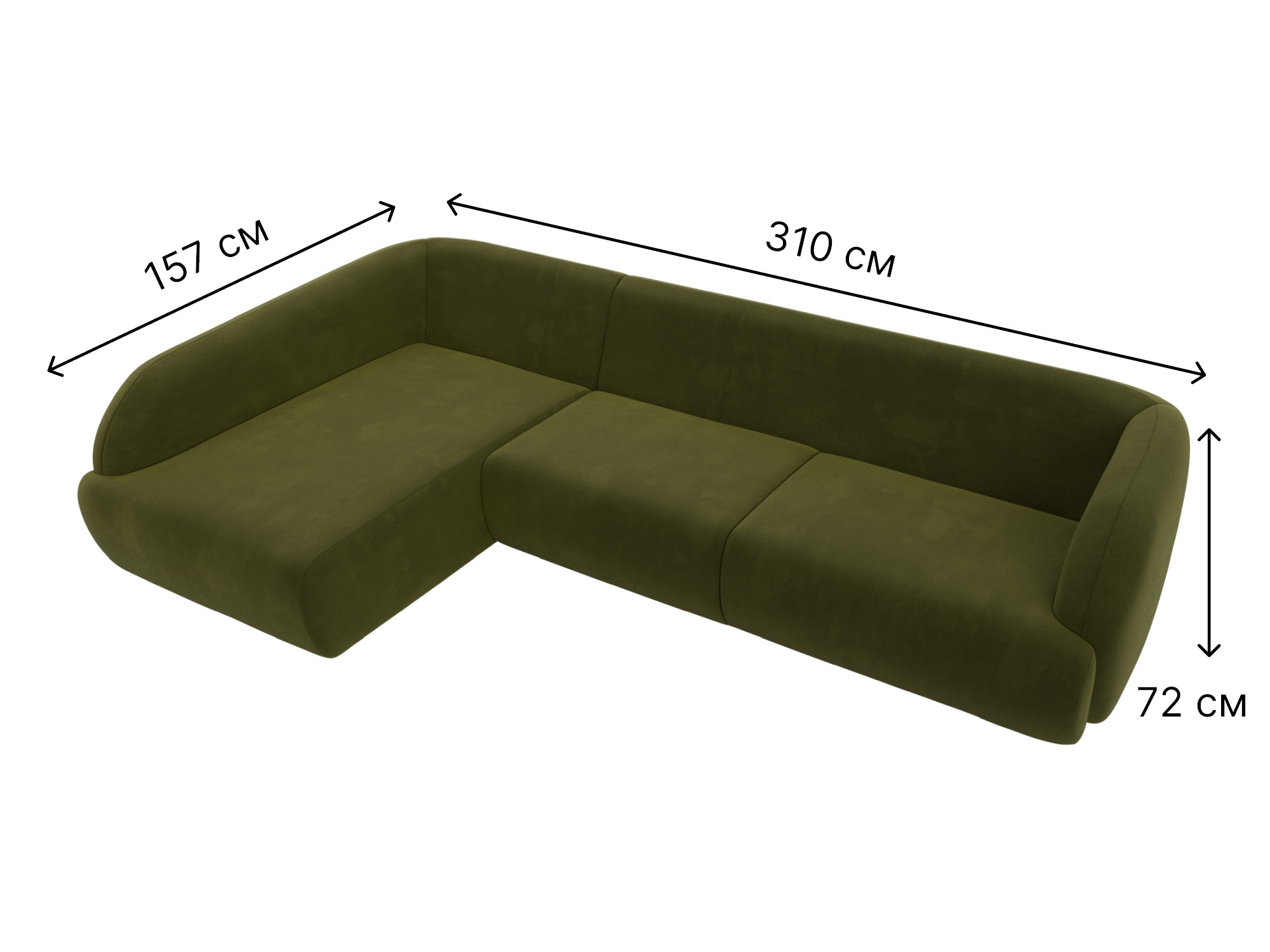 При больших габаритах — 310х72х157 см — диван будет хорошо смотреться в гостиной или офисе.