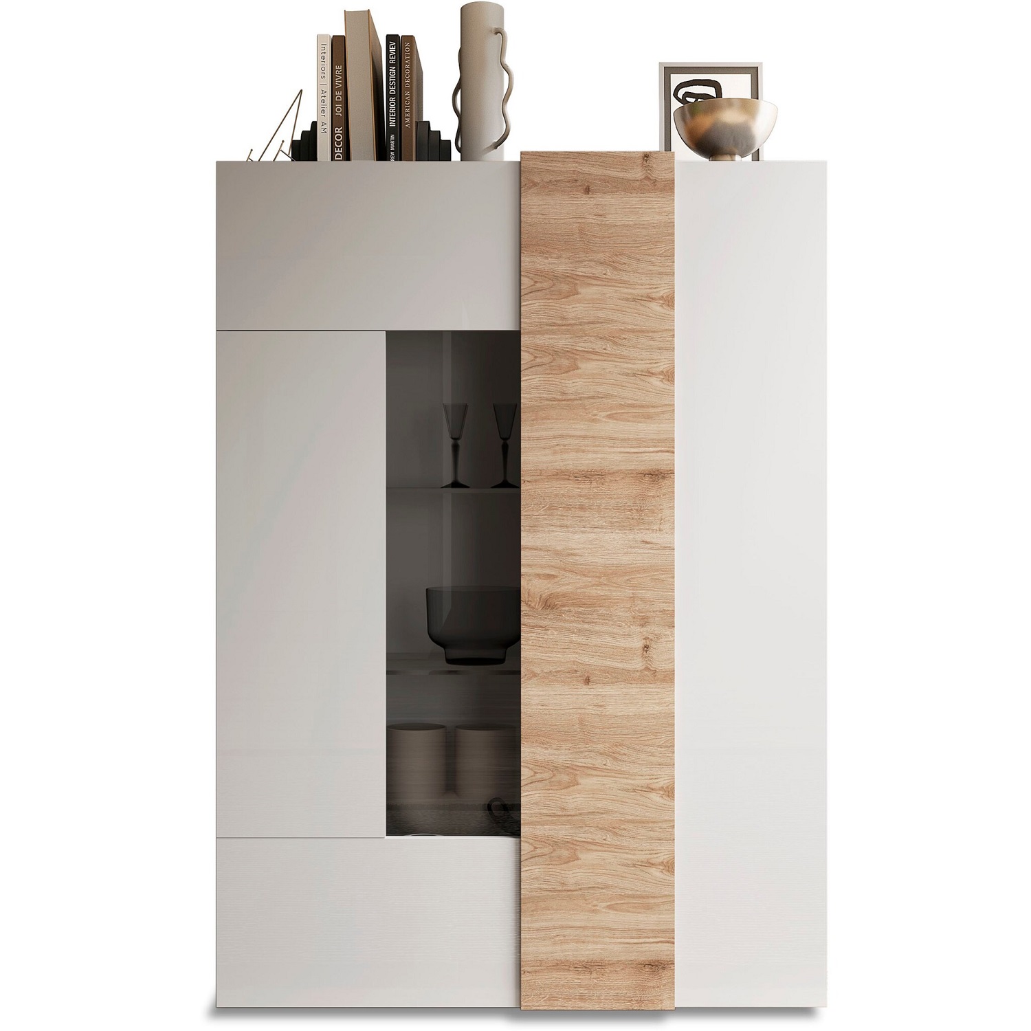 Фасад: МДФ пленка ПВХ Белый Глянец, вставка ЛДСП Дуб Бунратти