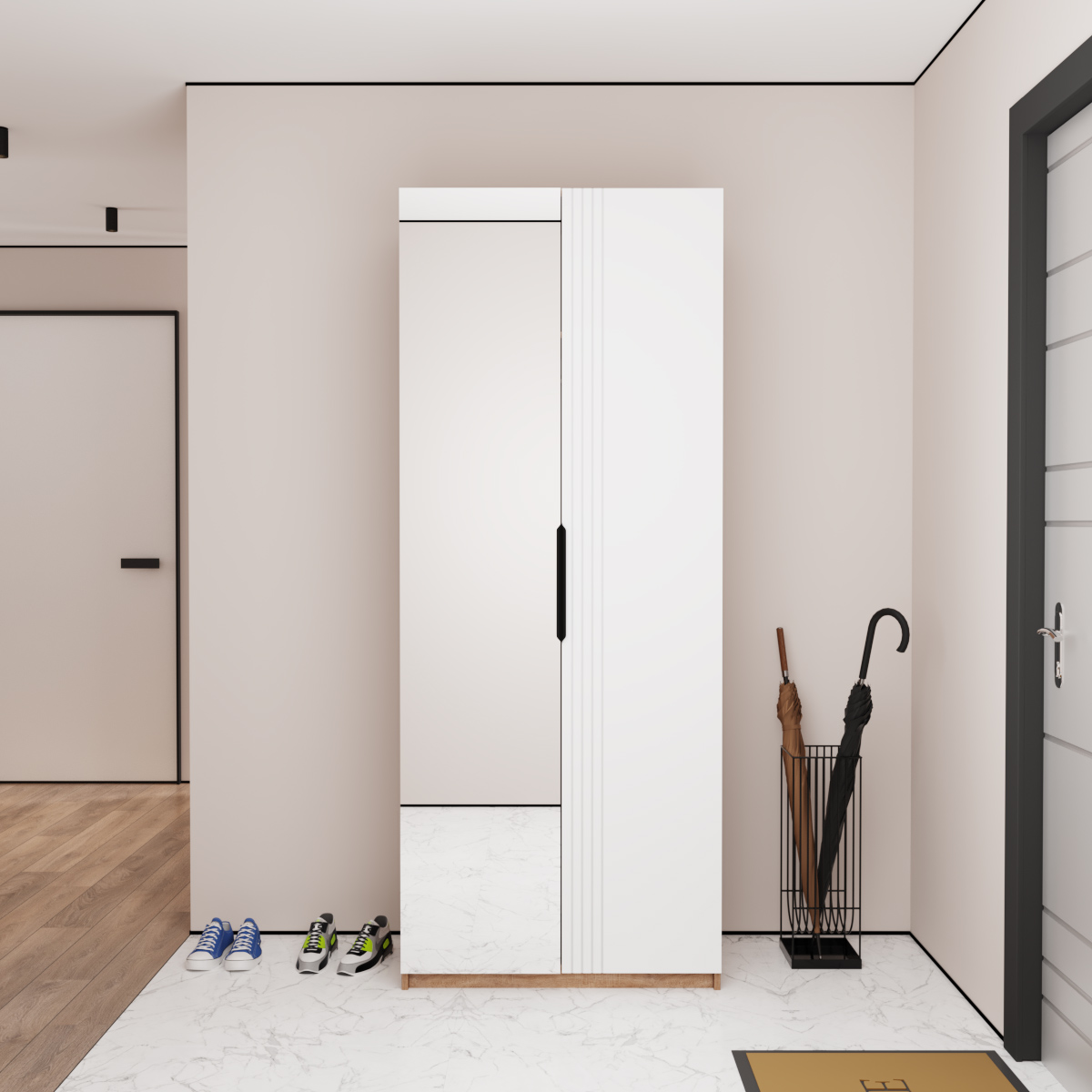 Шкаф распашной Астрис - 1 с зеркалом (Белый)