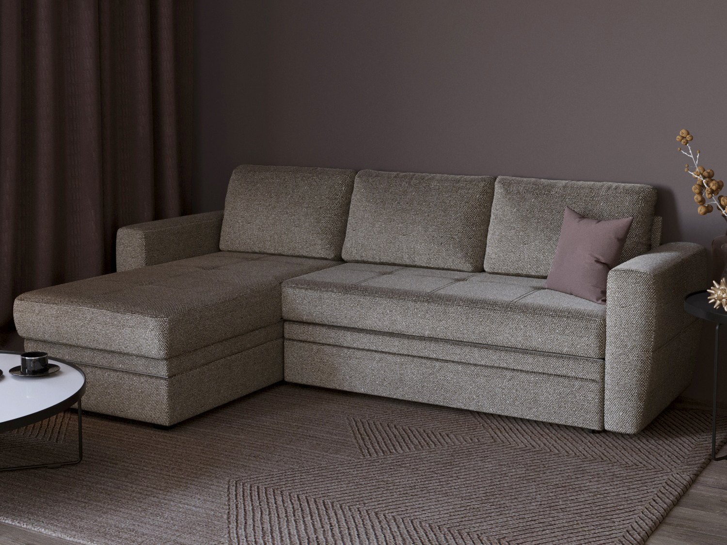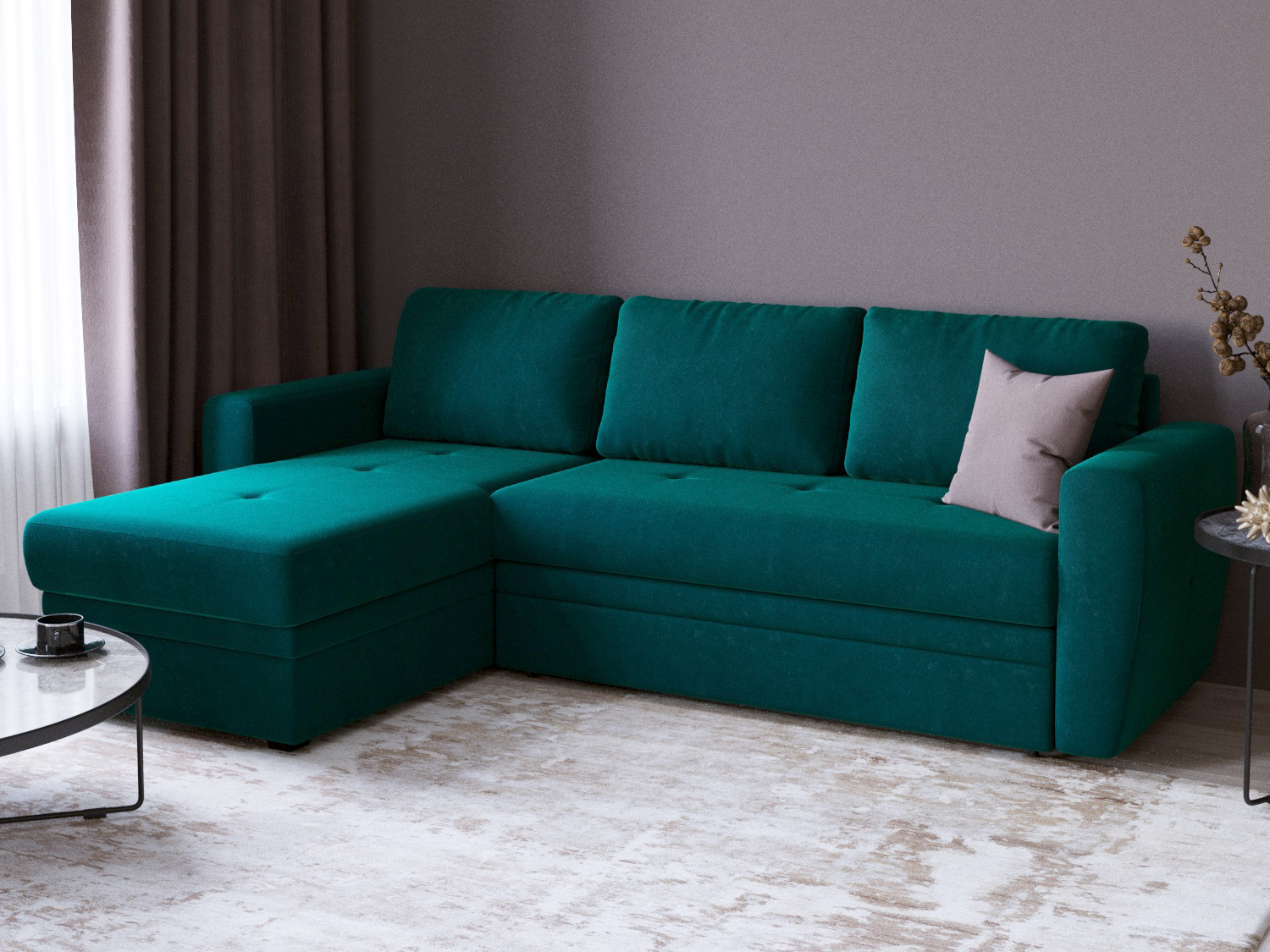 Угловой диван-кровать «Лакки» имеет классический внешний вид: три большие прямоугольные подушки спинки, просторное сиденье с точечными утяжками на ткани, подлокотники, расширяющиеся в верхней части. Если вы не слишком жалуете дизайнерские эксперименты с формой, предпочитаете сдержанные, традиционные интерьеры и ищите аналогичную мебель, «Лакки» станет подходящим выбором для вас. При этом функциональность модели соответствует всем современным стандартам: секцию канапе можно переставить слева направо или наоборот самостоятельно, без помощи сборщиков; наполнитель рассчитан на ежедневные длительные нагрузки и обладает анатомическими свойствами; нагрузка распределяется равномерно, поясничный и плечевые пояса получают необходимую поддержку.