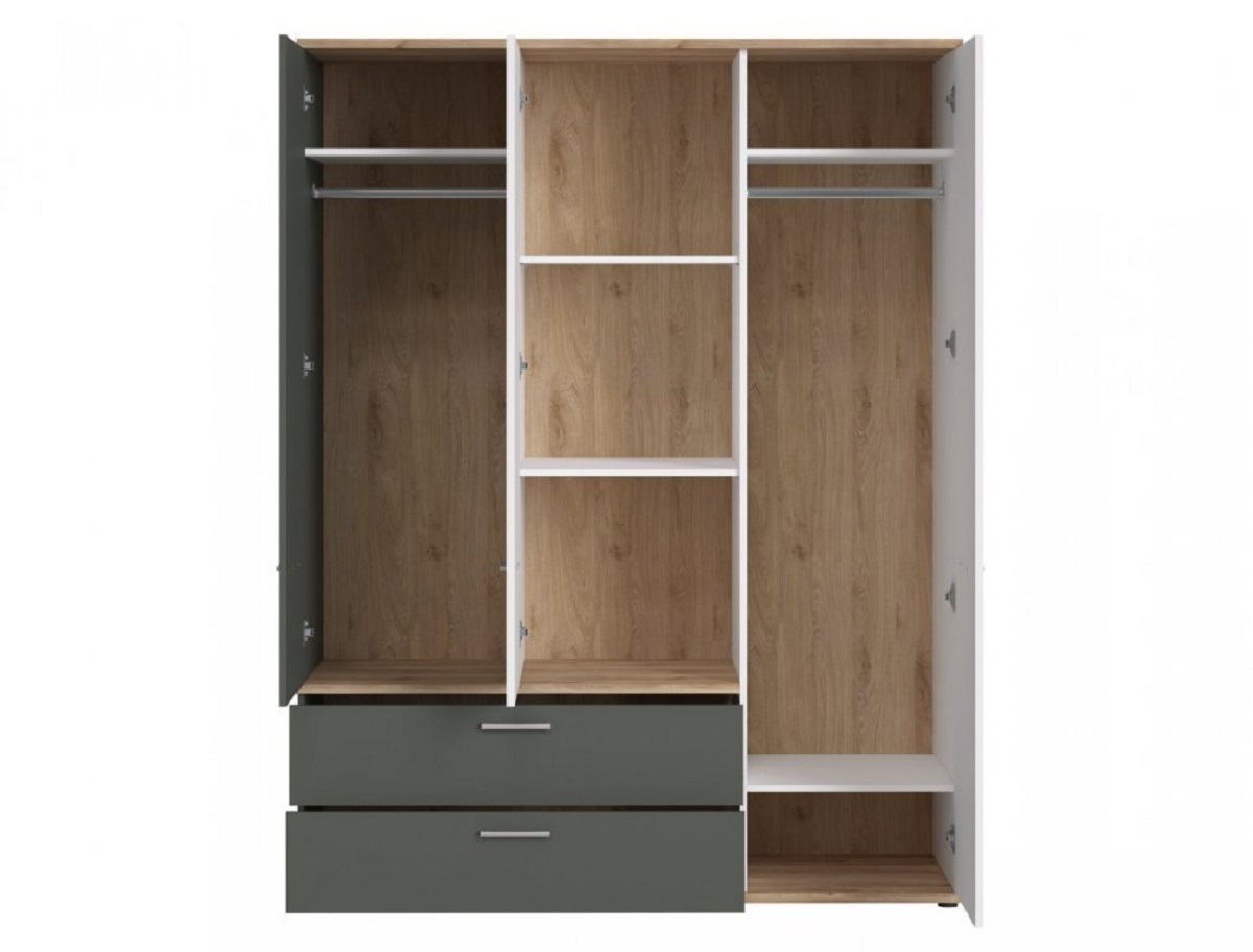 наполнение: П (полка + штанга) / Б (2 полки) / П (полка под шляпы + штанга + полка под обувь) + 2 ящика