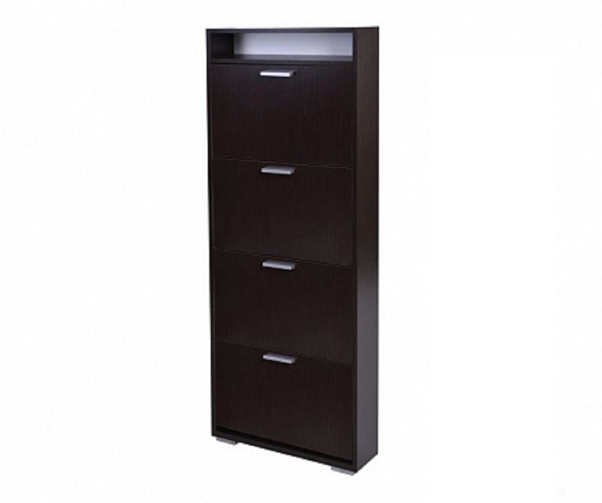 Конструкция с 4я откидными секциями для хранения обуви и открытой полочкой для ключей.