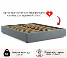 • 2-спальная софа без спинки Base 160*200 оборудована подъемным ортопедическим основанием - гнутоклееными ламелями.