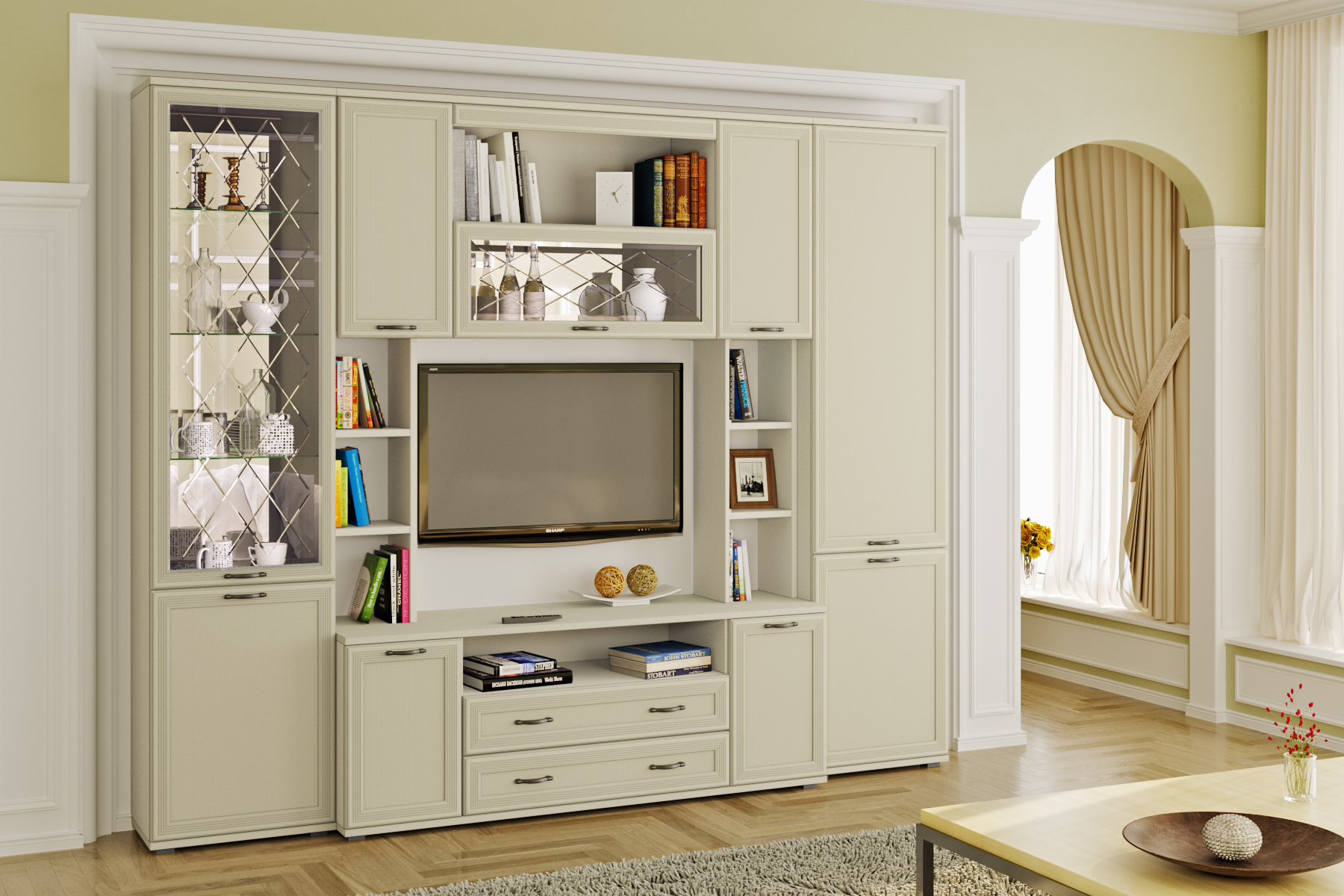 Корпусная мебель для гостиной "Карина" - это модульная мебель. Коллекция включает в себя более 70-ти оригинальных модулей, созданная с их помощью композиция отлично впишется в любое помещение. Программа «Карина» позволит создать уют и гармонию в гостиной. Фасад имеет уникальное сочетание глубокого тиснения и эффекта патины, присущей классическому стилю. Изящество фасада подчеркивает стекло с алмазной гравировкой и фацетом. Мебель изготавливается из высококачественных материалов: ЛДСП, МДФ (фасад) компании Egger имеют класс эмиссии Е1. Коллекция мебели комплектуется высококачественной европейской фурнитурой. Во всех выдвижных ящиках используются направляющие Quadro фирмы Hettich, которые обеспечат долгую превосходную функциональность. Встроенный демпфер Silent System позволяет закрывать ящик плавно и бесшумно. Скрытый монтаж делает механизм в нижней части ящика невидимым глазу, что позволяет не нарушать элегантный дизайн. Петли с доводчиками фирмы Titus обеспечивают бесшумное закрытие створки.