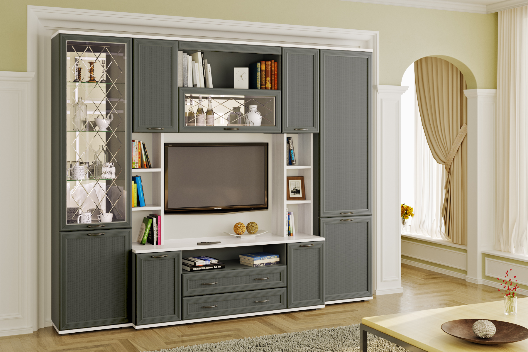 Корпусная мебель для гостиной "Карина" - это модульная мебель. Коллекция включает в себя более 70-ти оригинальных модулей, созданная с их помощью композиция отлично впишется в любое помещение. Программа «Карина» позволит создать уют и гармонию в гостиной. Фасад имеет уникальное сочетание глубокого тиснения и эффекта патины, присущей классическому стилю. Изящество фасада подчеркивает стекло с алмазной гравировкой и фацетом. Мебель изготавливается из высококачественных материалов: ЛДСП, МДФ (фасад) компании Egger имеют класс эмиссии Е1. Коллекция мебели комплектуется высококачественной европейской фурнитурой. Во всех выдвижных ящиках используются направляющие Quadro фирмы Hettich, которые обеспечат долгую превосходную функциональность. Встроенный демпфер Silent System позволяет закрывать ящик плавно и бесшумно. Скрытый монтаж делает механизм в нижней части ящика невидимым глазу, что позволяет не нарушать элегантный дизайн. Петли с доводчиками фирмы Titus обеспечивают бесшумное закрытие створки.