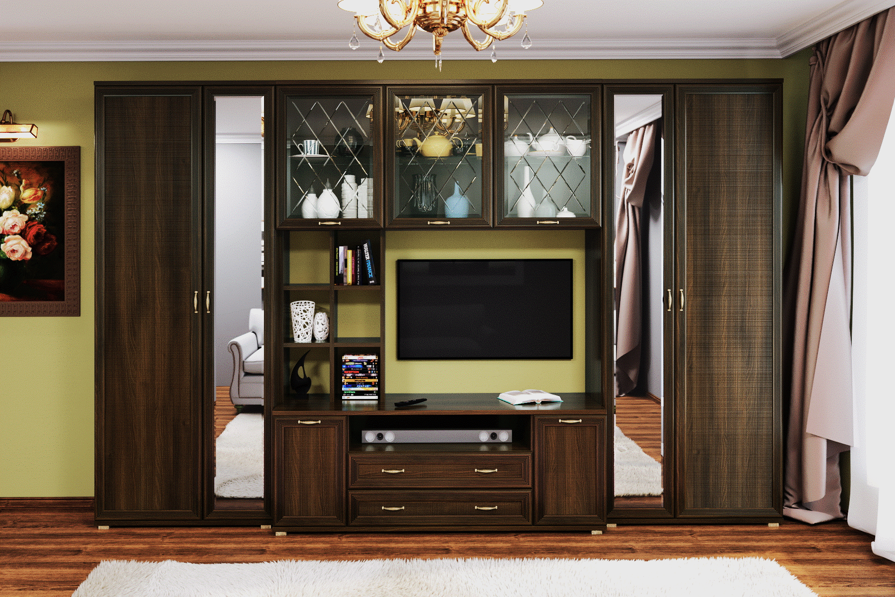 Корпусная мебель для гостиной "Карина" - это модульная мебель. Коллекция включает в себя более 70-ти оригинальных модулей, созданная с их помощью композиция отлично впишется в любое помещение. Программа «Карина» позволит создать уют и гармонию в гостиной. Фасад имеет уникальное сочетание глубокого тиснения и эффекта патины, присущей классическому стилю. Изящество фасада подчеркивает стекло с алмазной гравировкой и фацетом. Мебель изготавливается из высококачественных материалов: ЛДСП, МДФ (фасад) компании Egger имеют класс эмиссии Е1. Коллекция мебели комплектуется высококачественной европейской фурнитурой. Во всех выдвижных ящиках используются направляющие Quadro фирмы Hettich, которые обеспечат долгую превосходную функциональность. Встроенный демпфер Silent System позволяет закрывать ящик плавно и бесшумно. Скрытый монтаж делает механизм в нижней части ящика невидимым глазу, что позволяет не нарушать элегантный дизайн. Петли с доводчиками фирмы Titus обеспечивают бесшумное закрытие створки.