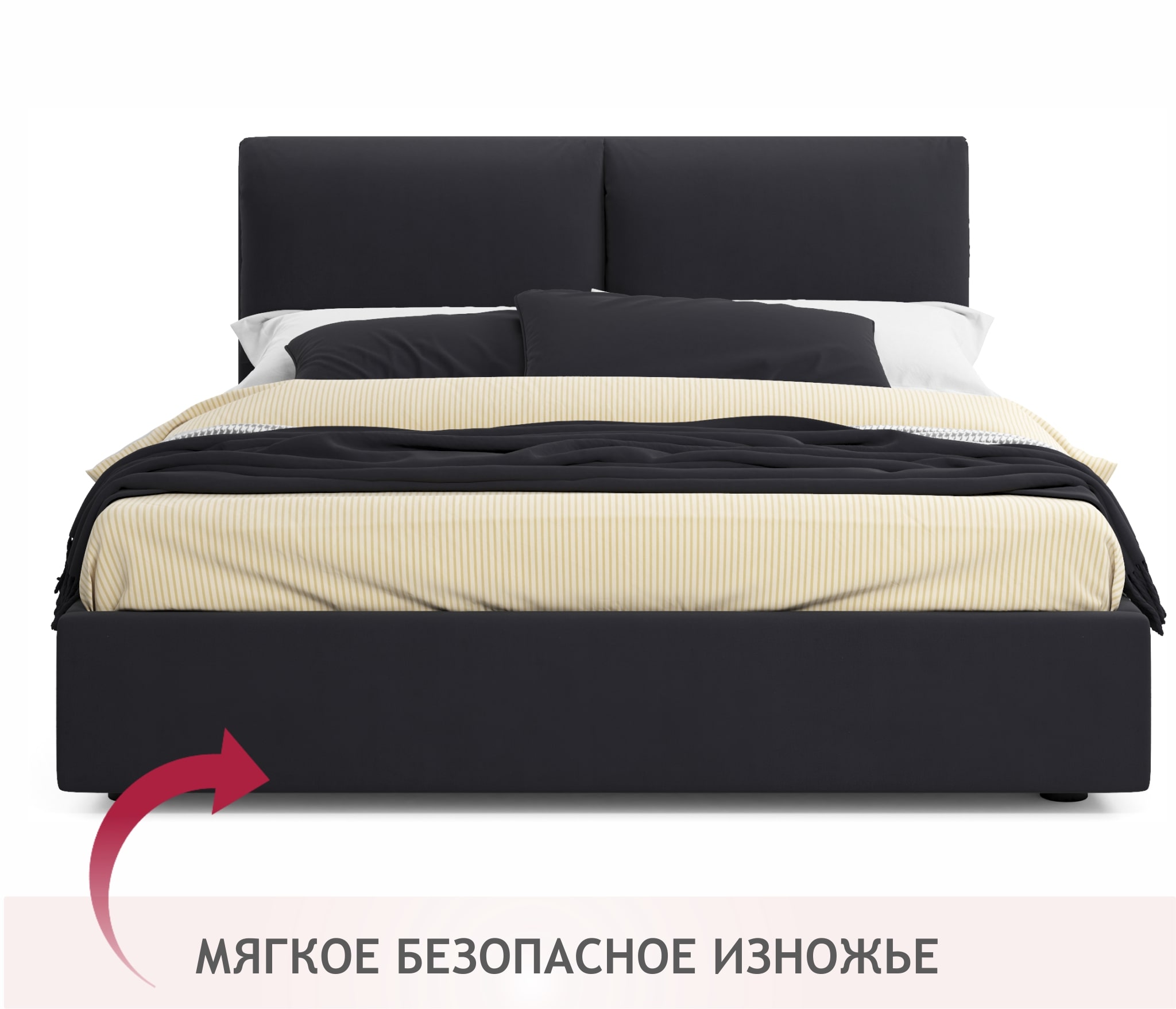 Кровать имеет очень мягкую спинку в виде двух подушек. Такой вид изголовья создает максимальный комфорт во время сна и отдыха.
