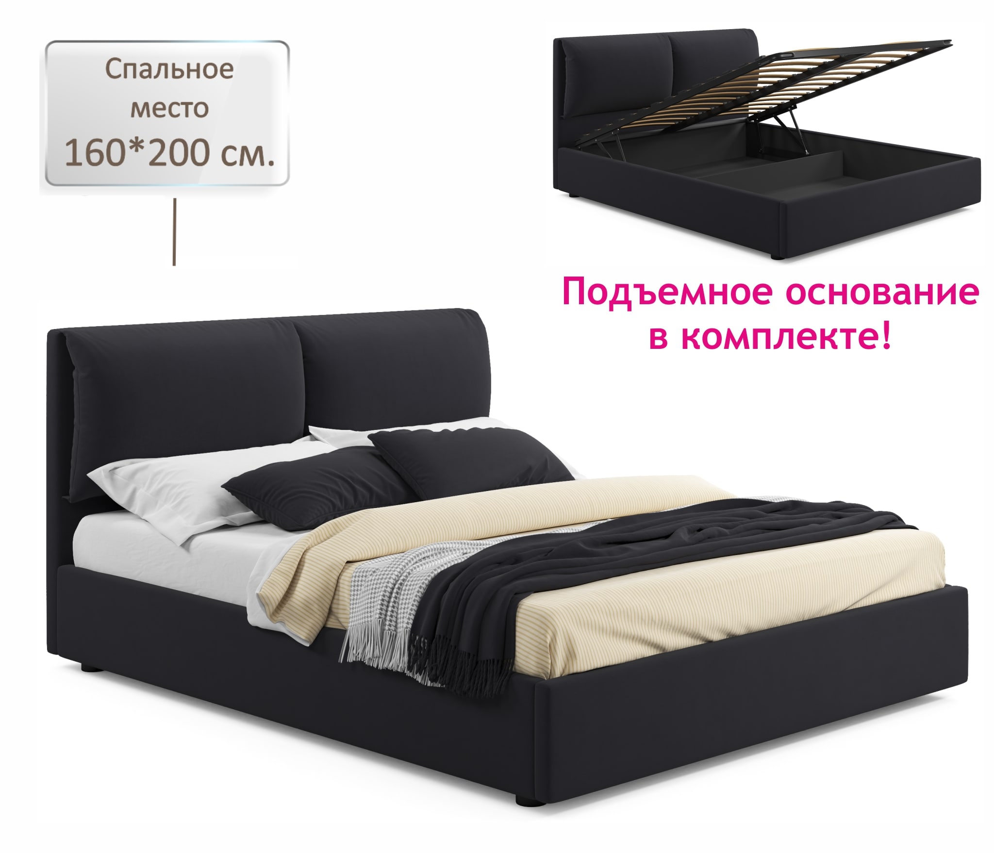 Отзывы о Столплит Мягкая кровать Vita 1600 с подъемным механизмом Велюр черный