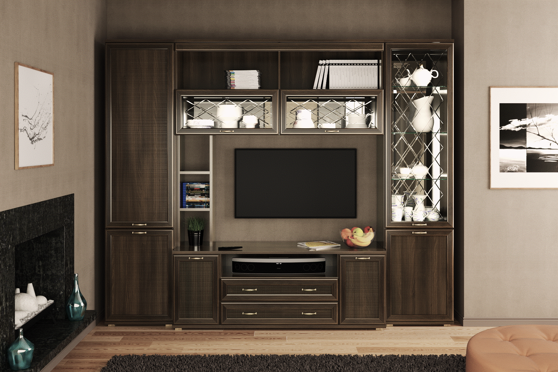 Корпусная мебель для гостиной "Карина" - это модульная мебель. Коллекция включает в себя более 70-ти оригинальных модулей, созданная с их помощью композиция отлично впишется в любое помещение. Программа «Карина» позволит создать уют и гармонию в гостиной. Фасад имеет уникальное сочетание глубокого тиснения и эффекта патины, присущей классическому стилю. Изящество фасада подчеркивает стекло с алмазной гравировкой и фацетом. Мебель изготавливается из высококачественных материалов: ЛДСП, МДФ (фасад) компании Egger имеют класс эмиссии Е1. Коллекция мебели комплектуется высококачественной европейской фурнитурой. Во всех выдвижных ящиках используются направляющие Quadro фирмы Hettich, которые обеспечат долгую превосходную функциональность. Встроенный демпфер Silent System позволяет закрывать ящик плавно и бесшумно. Скрытый монтаж делает механизм в нижней части ящика невидимым глазу, что позволяет не нарушать элегантный дизайн. Петли с доводчиками фирмы Titus обеспечивают бесшумное закрытие створки.