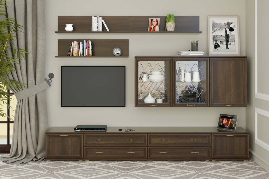 Корпусная мебель для гостиной "Карина" - это модульная мебель. Коллекция включает в себя более 70-ти оригинальных модулей, созданная с их помощью композиция отлично впишется в любое помещение. Программа «Карина» позволит создать уют и гармонию в гостиной. Фасад имеет уникальное сочетание глубокого тиснения и эффекта патины, присущей классическому стилю. Изящество фасада подчеркивает стекло с алмазной гравировкой и фацетом. Мебель изготавливается из высококачественных материалов: ЛДСП, МДФ (фасад) компании Egger имеют класс эмиссии Е1. Коллекция мебели комплектуется высококачественной европейской фурнитурой. Во всех выдвижных ящиках используются направляющие Quadro фирмы Hettich, которые обеспечат долгую превосходную функциональность. Встроенный демпфер Silent System позволяет закрывать ящик плавно и бесшумно. Скрытый монтаж делает механизм в нижней части ящика невидимым глазу, что позволяет не нарушать элегантный дизайн. Петли с доводчиками фирмы Titus обеспечивают бесшумное закрытие створки.