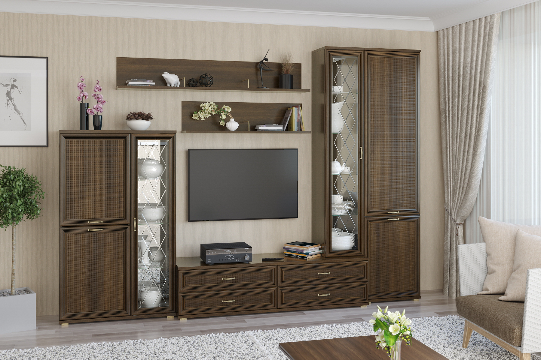 Корпусная мебель для гостиной "Карина" - это модульная мебель. Коллекция включает в себя более 70-ти оригинальных модулей, созданная с их помощью композиция отлично впишется в любое помещение. Программа «Карина» позволит создать уют и гармонию в гостиной. Фасад имеет уникальное сочетание глубокого тиснения и эффекта патины, присущей классическому стилю. Изящество фасада подчеркивает стекло с алмазной гравировкой и фацетом. Мебель изготавливается из высококачественных материалов: ЛДСП, МДФ (фасад) компании Egger имеют класс эмиссии Е1. Коллекция мебели комплектуется высококачественной европейской фурнитурой. Во всех выдвижных ящиках используются направляющие Quadro фирмы Hettich, которые обеспечат долгую превосходную функциональность. Встроенный демпфер Silent System позволяет закрывать ящик плавно и бесшумно. Скрытый монтаж делает механизм в нижней части ящика невидимым глазу, что позволяет не нарушать элегантный дизайн. Петли с доводчиками фирмы Titus обеспечивают бесшумное закрытие створки.