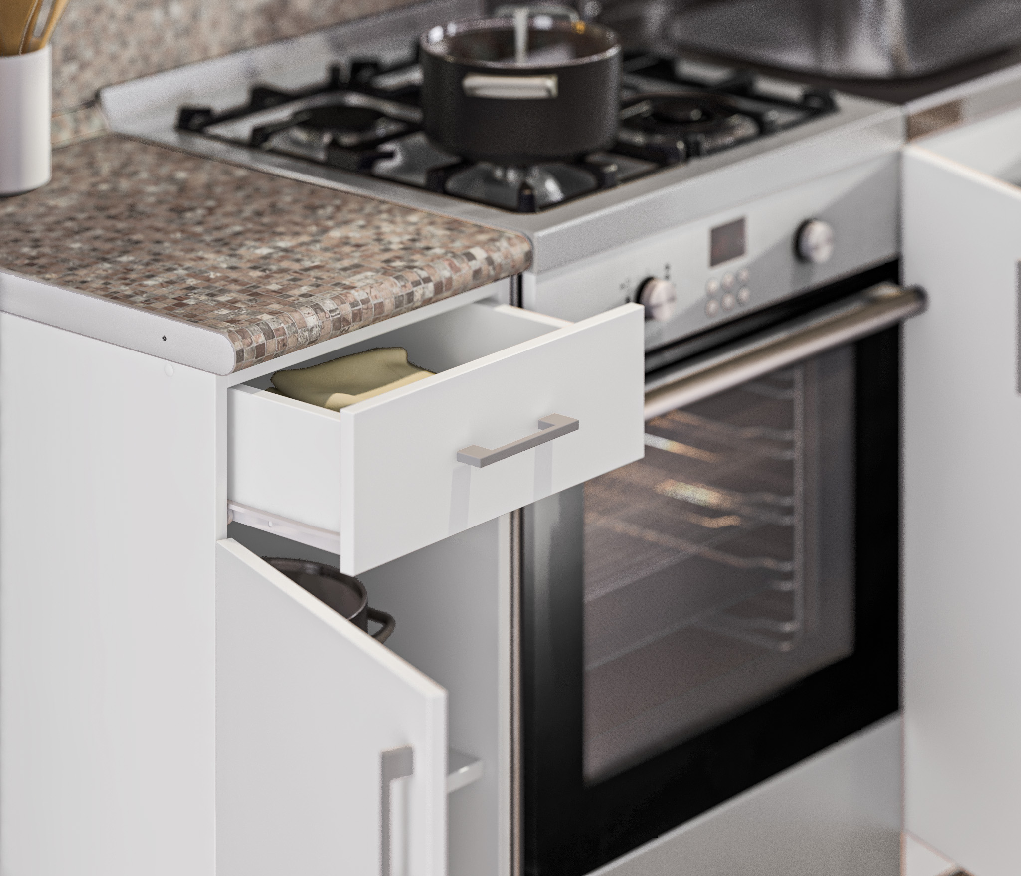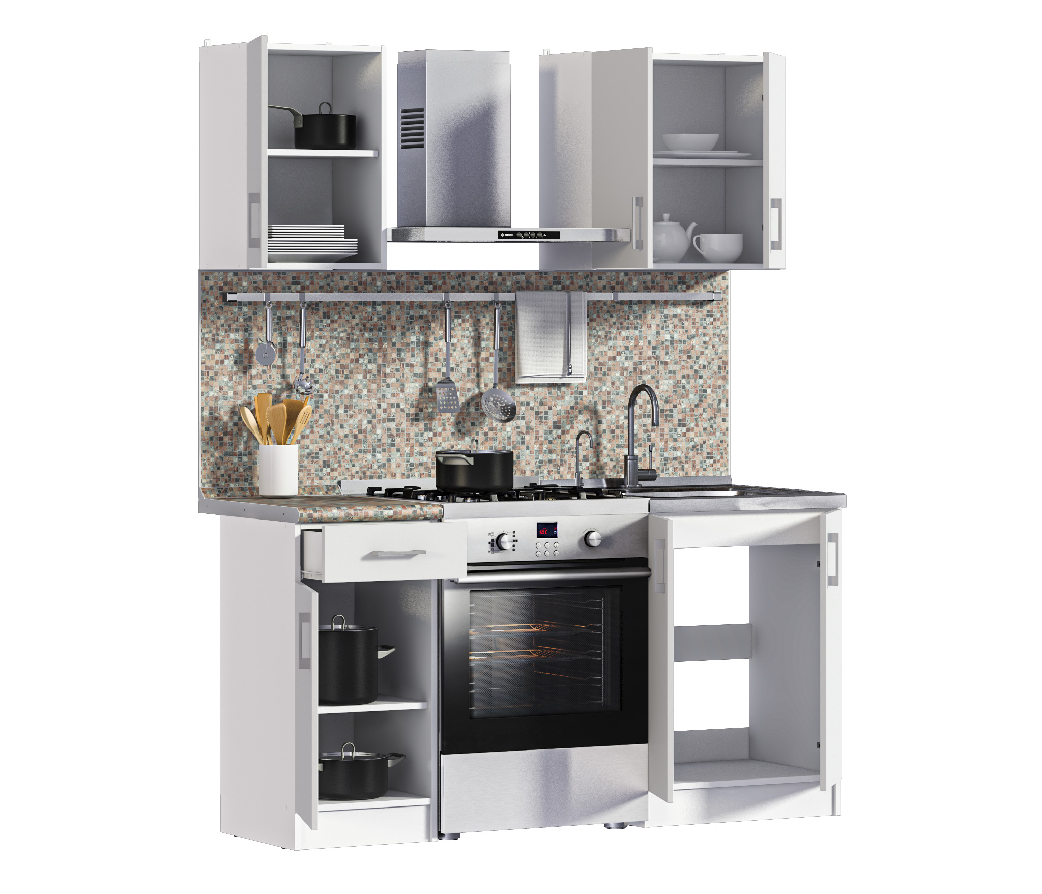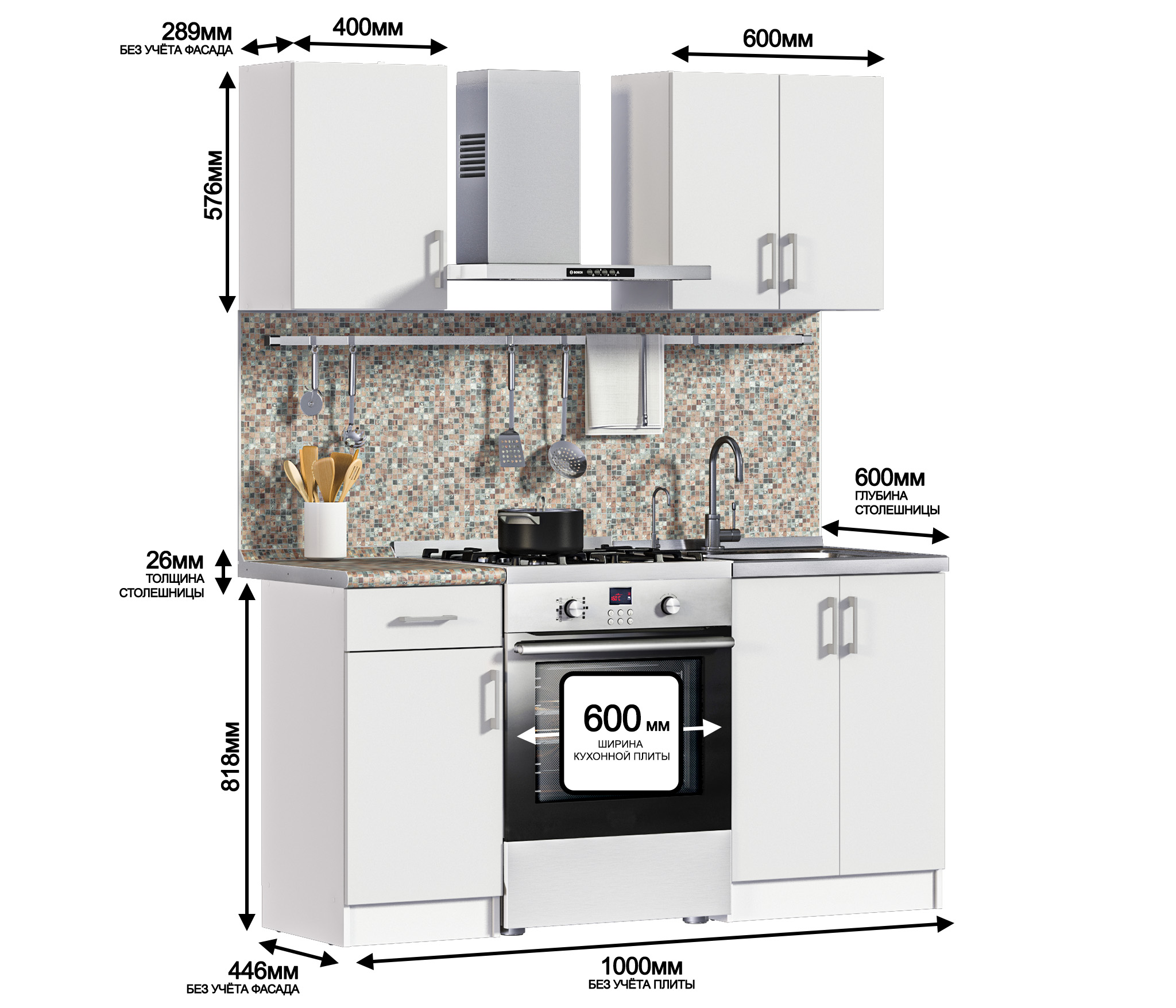 Дополнительно рекомендуем приобрести стеновую панель, мойку и смеситель.