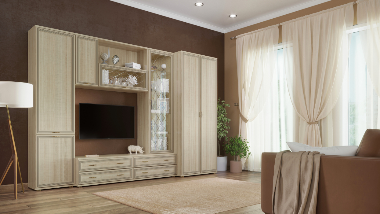 Корпусная мебель для гостиной "Карина" - это модульная мебель. Коллекция включает в себя более 70-ти оригинальных модулей, созданная с их помощью композиция отлично впишется в любое помещение. Программа «Карина» позволит создать уют и гармонию в гостиной. Фасад имеет уникальное сочетание глубокого тиснения и эффекта патины, присущей классическому стилю. Изящество фасада подчеркивает стекло с алмазной гравировкой и фацетом. Мебель изготавливается из высококачественных материалов: ЛДСП, МДФ (фасад) компании Egger имеют класс эмиссии Е1. Коллекция мебели комплектуется высококачественной европейской фурнитурой. Во всех выдвижных ящиках используются направляющие Quadro фирмы Hettich, которые обеспечат долгую превосходную функциональность. Встроенный демпфер Silent System позволяет закрывать ящик плавно и бесшумно. Скрытый монтаж делает механизм в нижней части ящика невидимым глазу, что позволяет не нарушать элегантный дизайн. Петли с доводчиками фирмы Titus обеспечивают бесшумное закрытие створки.
