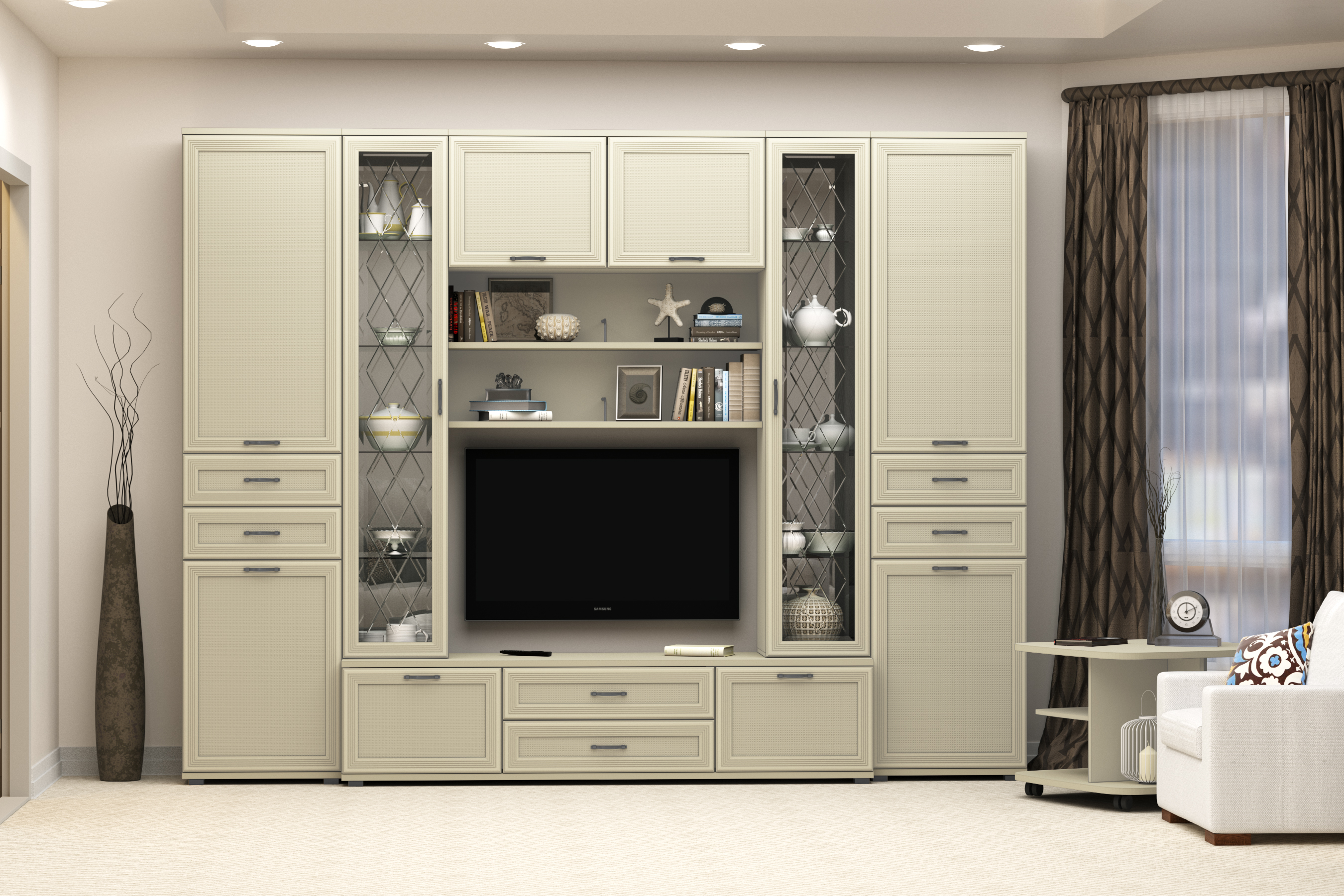 Корпусная мебель для гостиной "Карина" - это модульная мебель. Коллекция включает в себя более 70-ти оригинальных модулей, созданная с их помощью композиция отлично впишется в любое помещение. Программа «Карина» позволит создать уют и гармонию в гостиной. Фасад имеет уникальное сочетание глубокого тиснения и эффекта патины, присущей классическому стилю. Изящество фасада подчеркивает стекло с алмазной гравировкой и фацетом. Мебель изготавливается из высококачественных материалов: ЛДСП, МДФ (фасад) компании Egger имеют класс эмиссии Е1. Коллекция мебели комплектуется высококачественной европейской фурнитурой. Во всех выдвижных ящиках используются направляющие Quadro фирмы Hettich, которые обеспечат долгую превосходную функциональность. Встроенный демпфер Silent System позволяет закрывать ящик плавно и бесшумно. Скрытый монтаж делает механизм в нижней части ящика невидимым глазу, что позволяет не нарушать элегантный дизайн. Петли с доводчиками фирмы Titus обеспечивают бесшумное закрытие створки.