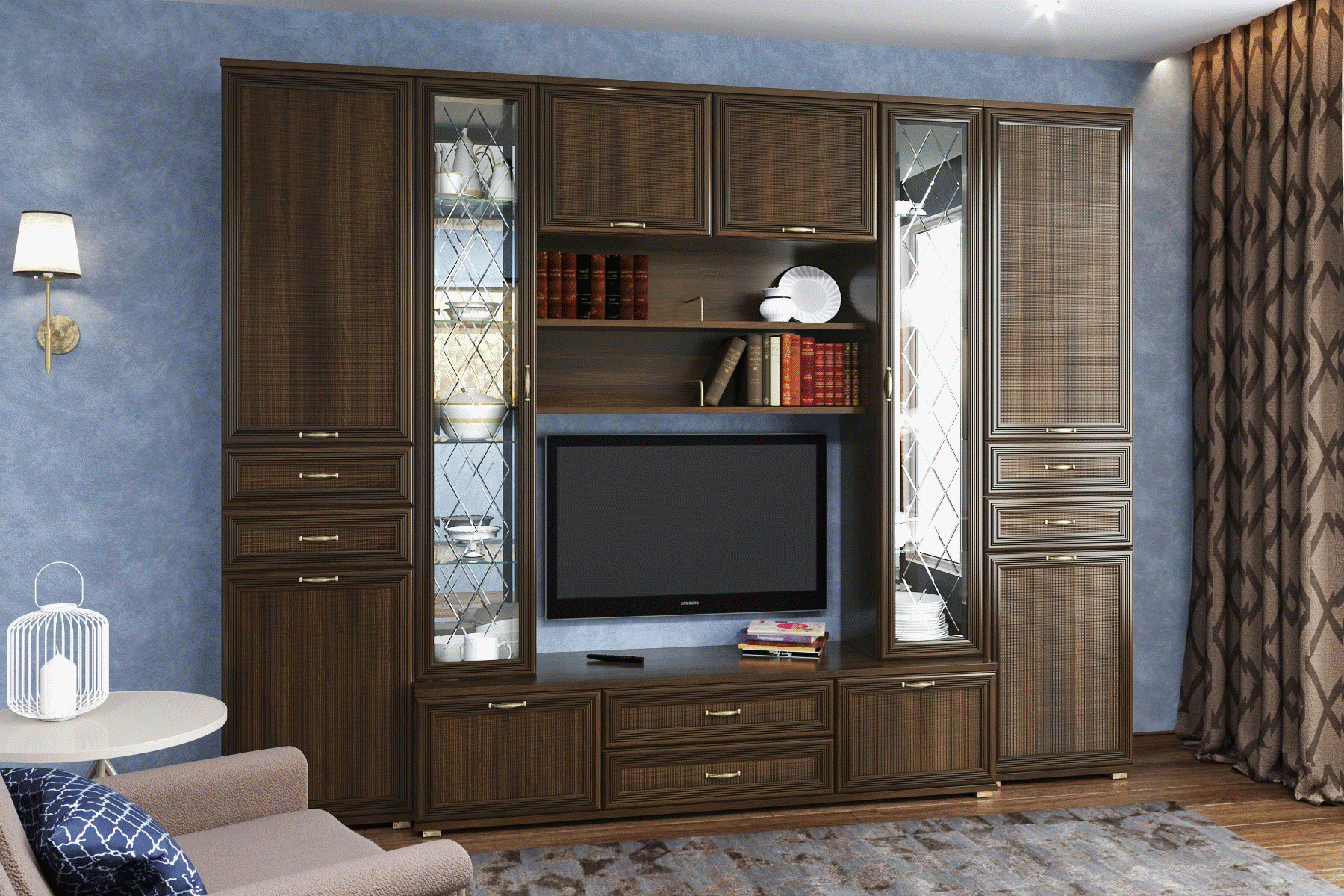 Корпусная мебель для гостиной "Карина" - это модульная мебель. Коллекция включает в себя более 70-ти оригинальных модулей, созданная с их помощью композиция отлично впишется в любое помещение. Программа «Карина» позволит создать уют и гармонию в гостиной. Фасад имеет уникальное сочетание глубокого тиснения и эффекта патины, присущей классическому стилю. Изящество фасада подчеркивает стекло с алмазной гравировкой и фацетом. Мебель изготавливается из высококачественных материалов: ЛДСП, МДФ (фасад) компании Egger имеют класс эмиссии Е1. Коллекция мебели комплектуется высококачественной европейской фурнитурой. Во всех выдвижных ящиках используются направляющие Quadro фирмы Hettich, которые обеспечат долгую превосходную функциональность. Встроенный демпфер Silent System позволяет закрывать ящик плавно и бесшумно. Скрытый монтаж делает механизм в нижней части ящика невидимым глазу, что позволяет не нарушать элегантный дизайн. Петли с доводчиками фирмы Titus обеспечивают бесшумное закрытие створки.