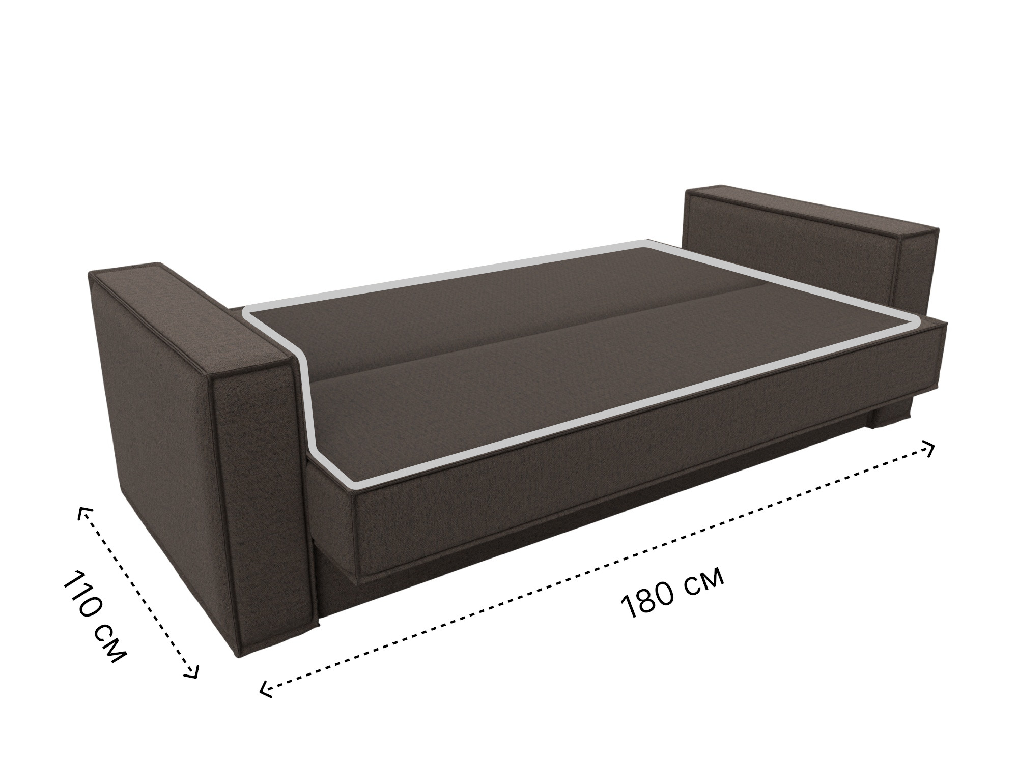 При компактных габаритах: 214х81х90 см подойдет для комнат любых размеров, обеспечивая спальное место 110х180 см.
