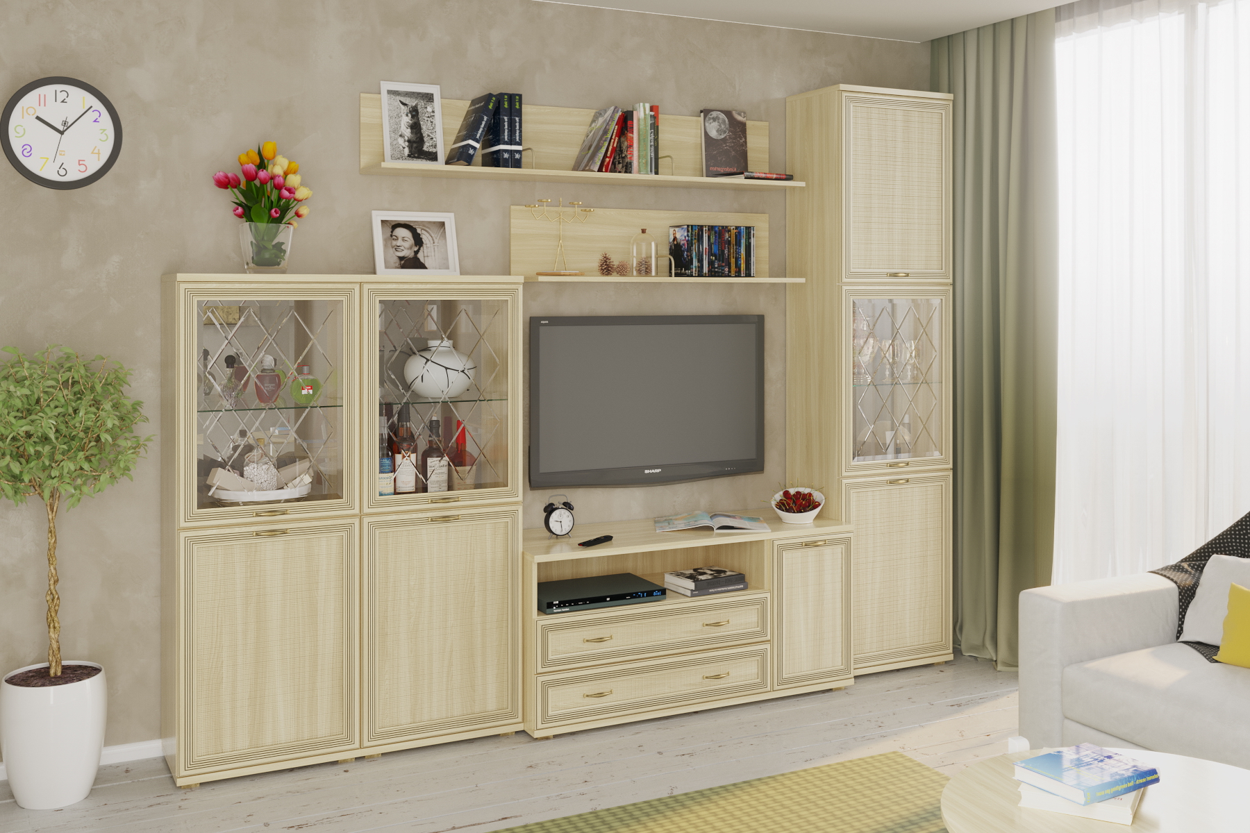Корпусная мебель для гостиной "Карина" - это модульная мебель. Коллекция включает в себя более 70-ти оригинальных модулей, созданная с их помощью композиция отлично впишется в любое помещение. Программа «Карина» позволит создать уют и гармонию в гостиной. Фасад имеет уникальное сочетание глубокого тиснения и эффекта патины, присущей классическому стилю. Изящество фасада подчеркивает стекло с алмазной гравировкой и фацетом. Мебель изготавливается из высококачественных материалов: ЛДСП, МДФ (фасад) компании Egger имеют класс эмиссии Е1. Коллекция мебели комплектуется высококачественной европейской фурнитурой. Во всех выдвижных ящиках используются направляющие Quadro фирмы Hettich, которые обеспечат долгую превосходную функциональность. Встроенный демпфер Silent System позволяет закрывать ящик плавно и бесшумно. Скрытый монтаж делает механизм в нижней части ящика невидимым глазу, что позволяет не нарушать элегантный дизайн. Петли с доводчиками фирмы Titus обеспечивают бесшумное закрытие створки.