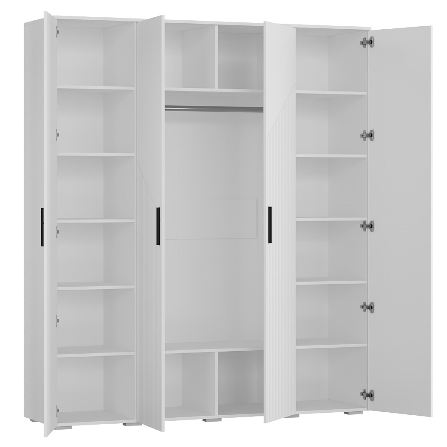 наполнение: Б (5 полок) / П (полка под шляпы с перегородкой + штанга металл + полка под обувь с перегородкой) / Б (5 полок)