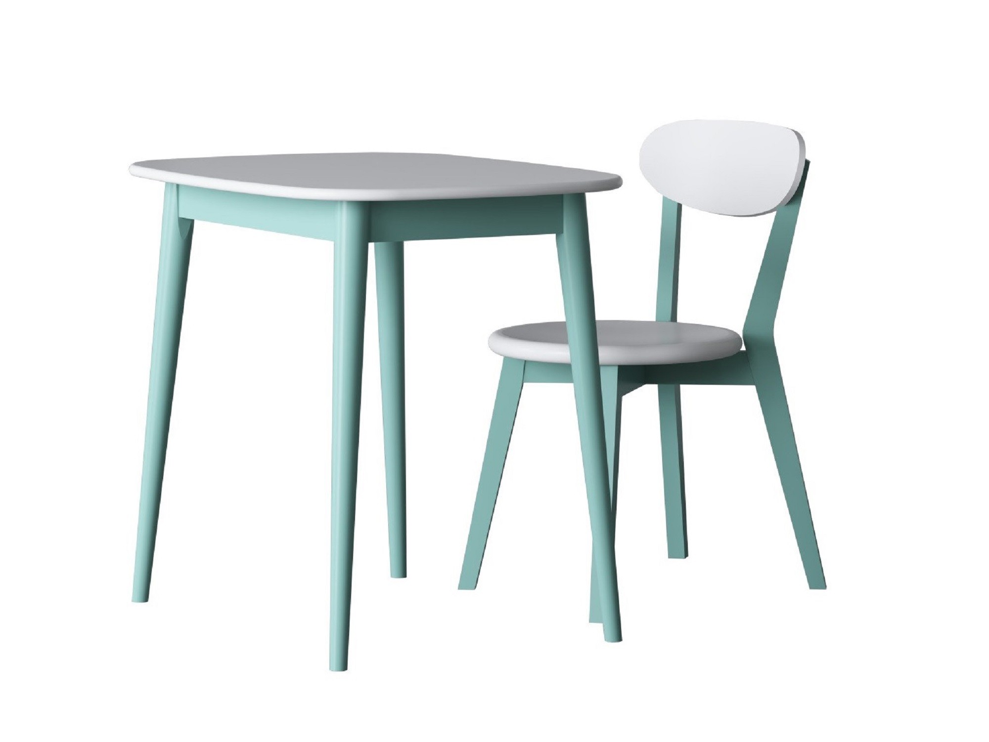 Белый стул Каспер с нежно-бирюзовыми ножками походит как мальчикам, так и девочкам. Стол можно использовать не только как обеденный, но для игр, рисования и чтения.