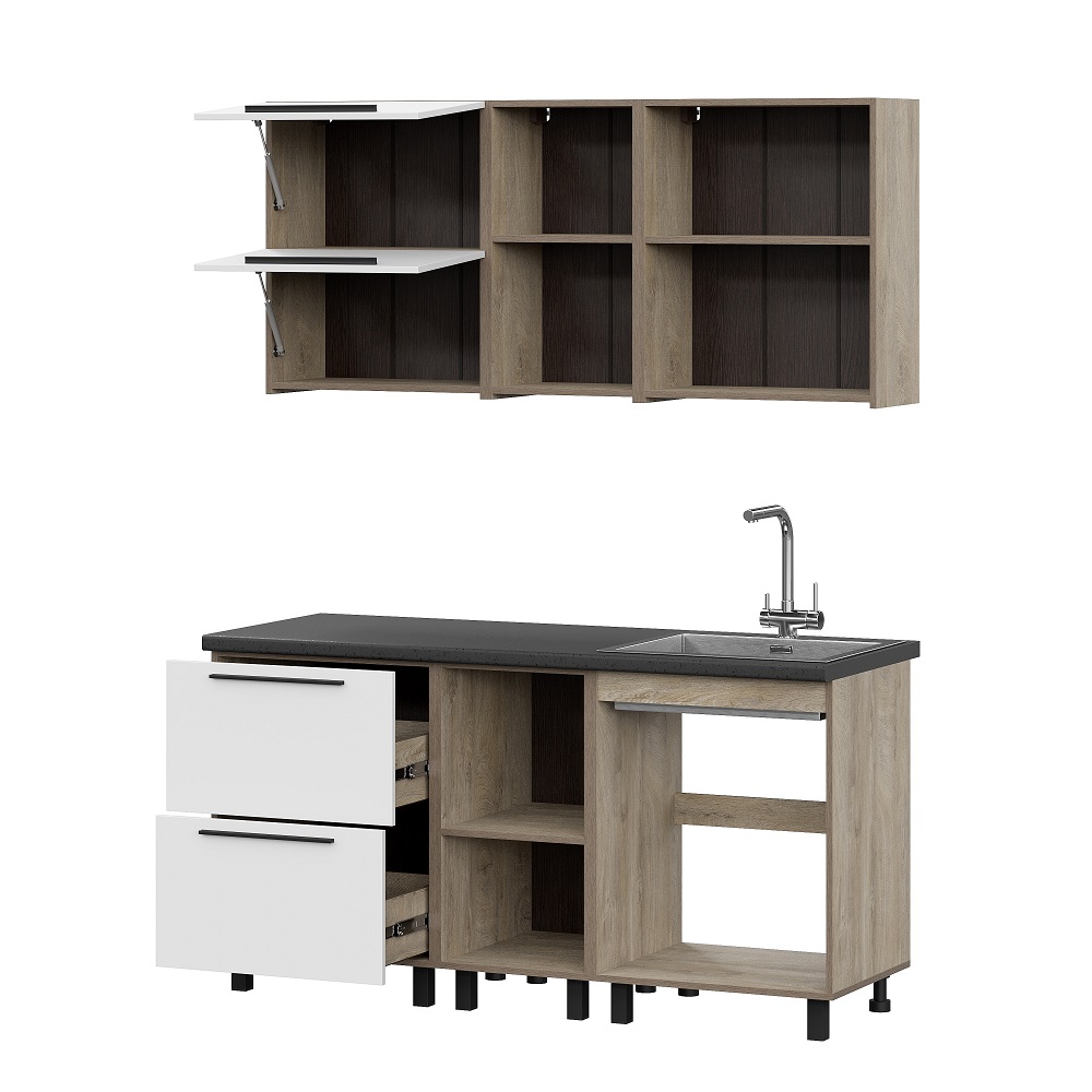 Модульная кухня Этна софт вайт выполнена в стиле контемпорари. Теплое сочетание необработанного древесного распила дуба на корпусе и светлых фасадов создаст особенную атмосферу у Вас дома. Разнообразие модулей позволит собрать уникальный комплект шкафов, учитывающий размеры и планировку Вашей кухни. Готовьте с удовольствием с кухней Этна.