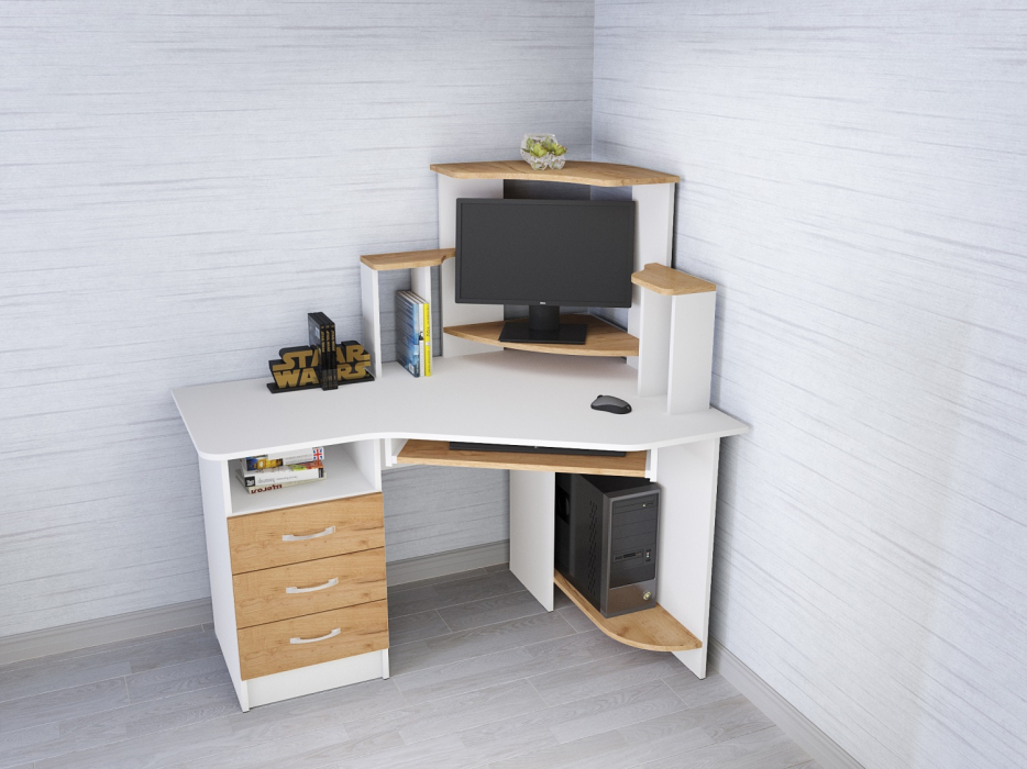 Угловой компьютерный стол Грета-7 - воплощение практичности и залог грамотно продуманного рабочего уголка дома. Модель имеет просторную столешницу со скругленными углами, открытую надстройку под установку компьютера и сопутствующей техники, выдвижную панель для клавиатуры, а также место для процессора. Если Вы хотите окружить себя комфортом и сэкономить место в комнате, Грета-7 - лучшее решение!