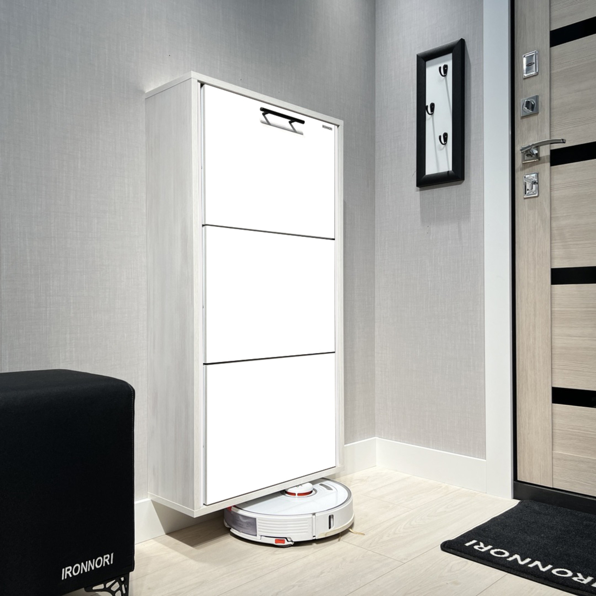 Модель ЛАЙТ подвесная, крепиться на стену за счет 4 дюпель-гвоздей на планках из ЛДСП. (при желании клиент может поставить шкаф для обуви на пол).