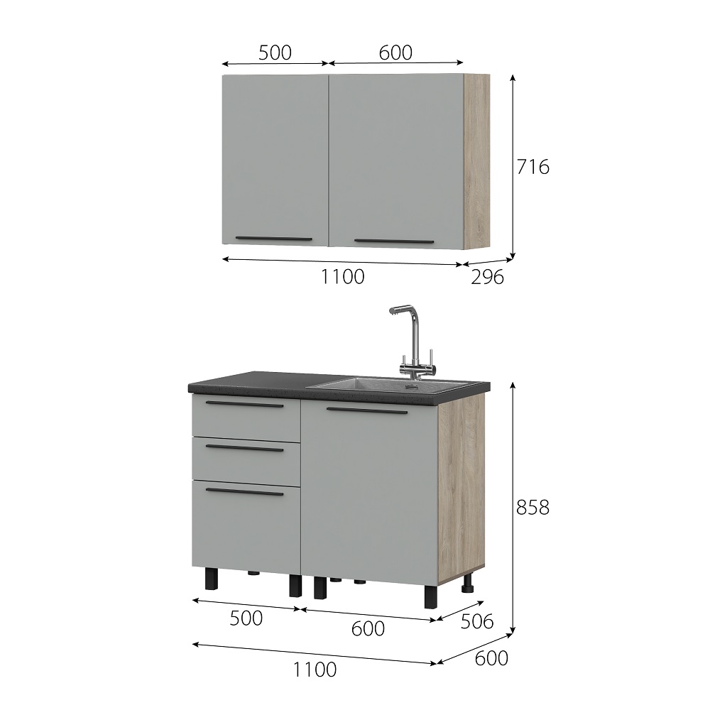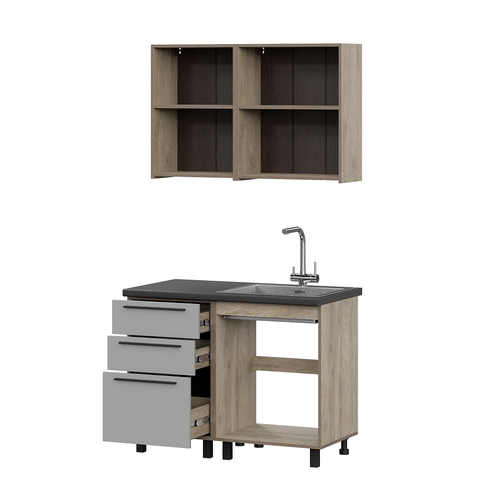Модульная кухня Этна Софт Грей выполнена в самом трендовом декоре этого года – выбеленном нежно-сером оттенке с пудровой текстурой Soft. Такой декор фасадов гармонично дополняет корпус с древесным рисунком эндгрей необработанный. Металлические черные ручки смотрятся минималистично, но при этом дорого. Кроме визуальной составляющей, серия удивляет разнообразием модулей и продуманным наполнением каждого из них.