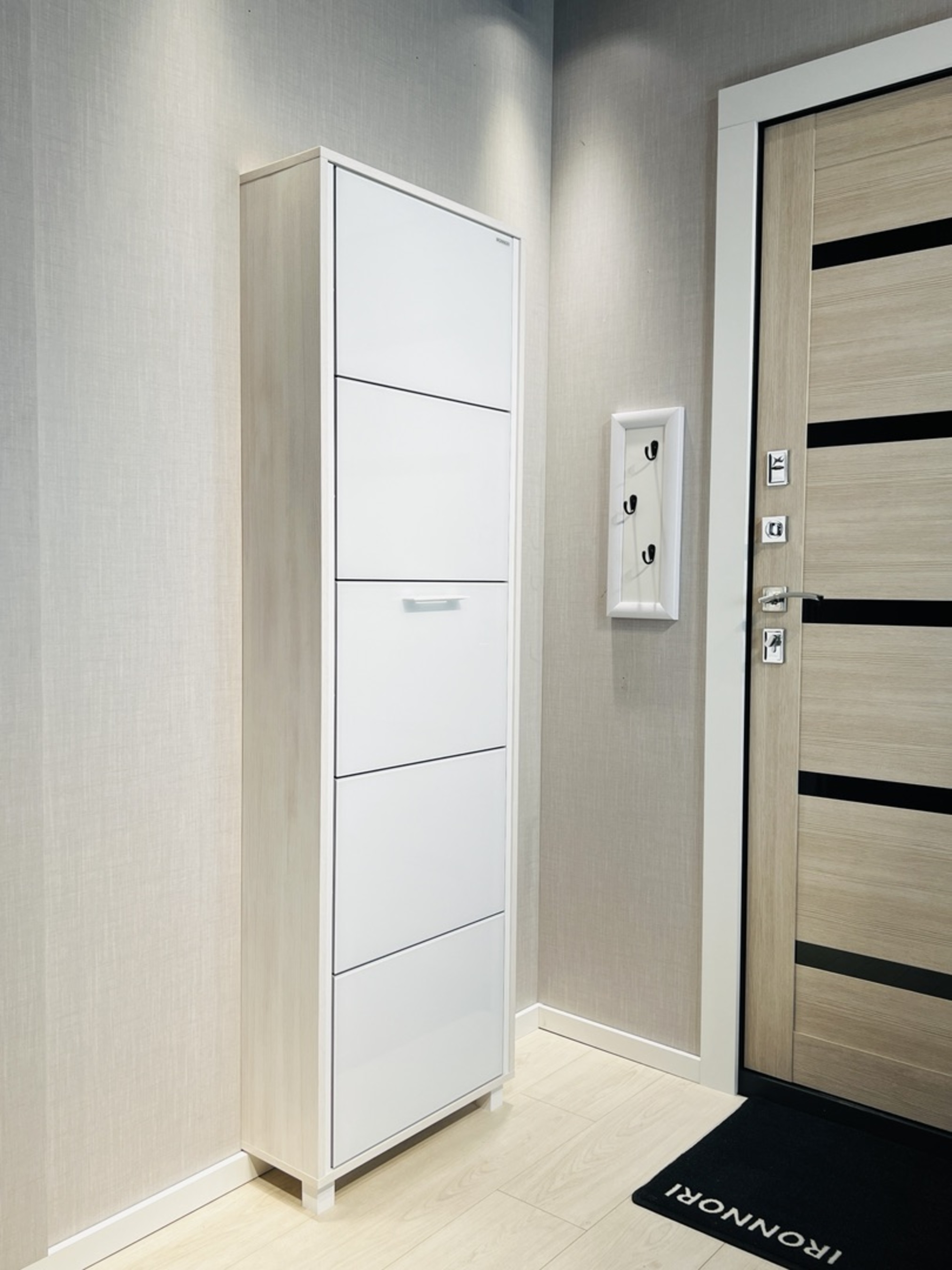 Модель ЛАЙТ подвесная, крепиться на стену за счет 4 дюпель-гвоздей на планках из ЛДСП. (при желании клиент может поставить шкаф для обуви на пол).