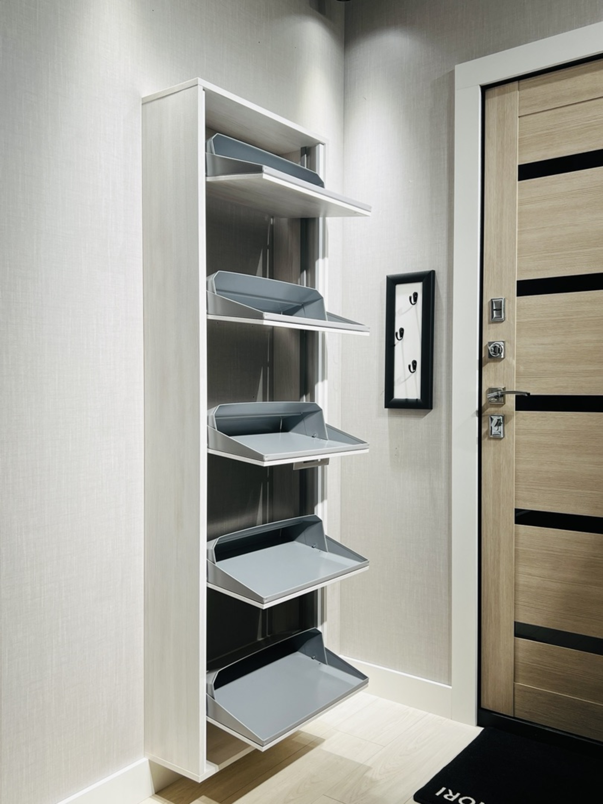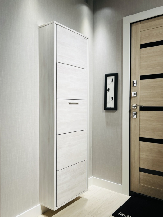 Модель ЛАЙТ подвесная, крепиться на стену за счет 4 дюпель-гвоздей на планках из ЛДСП. (при желании клиент может поставить шкаф для обуви на пол).