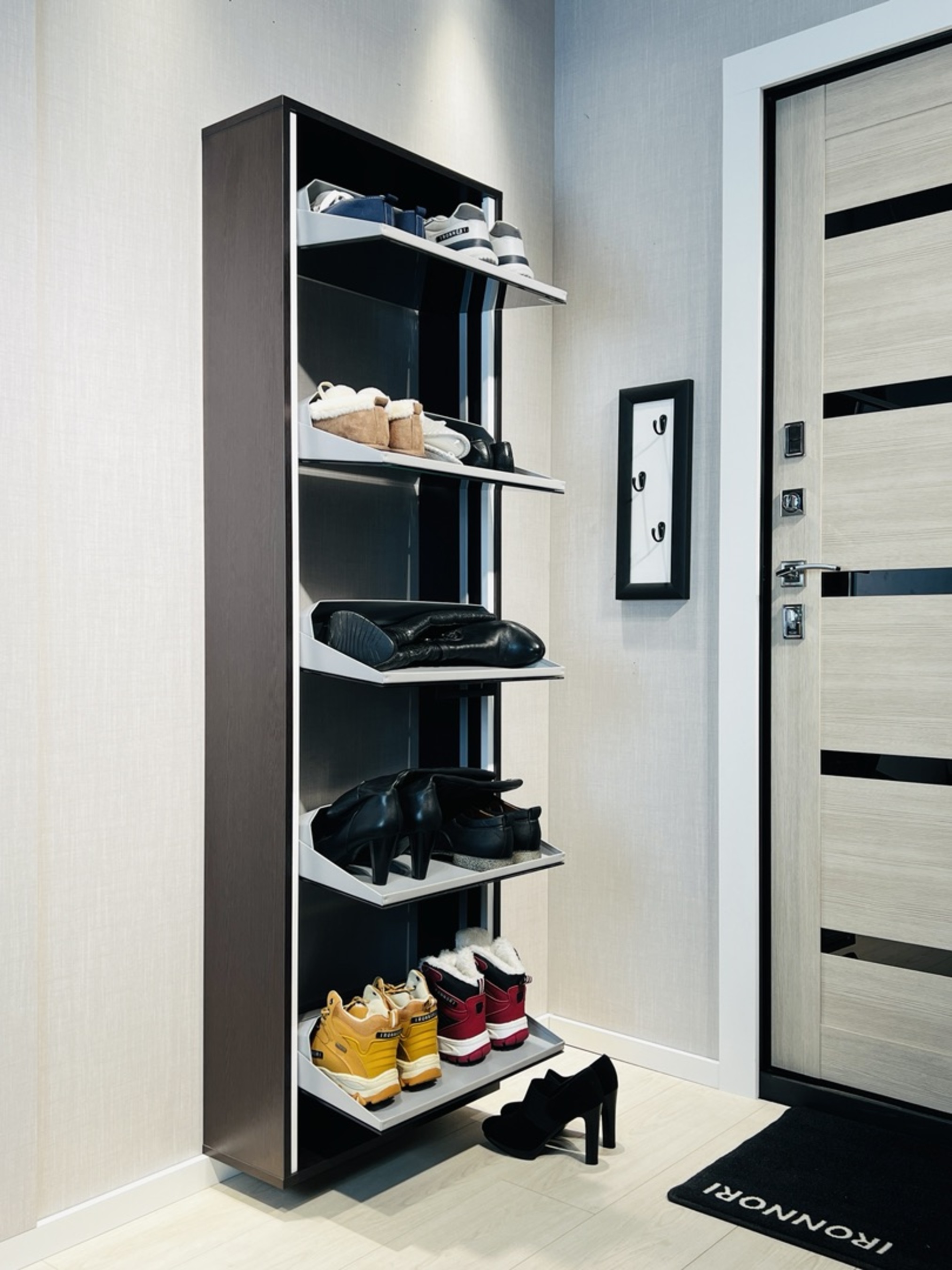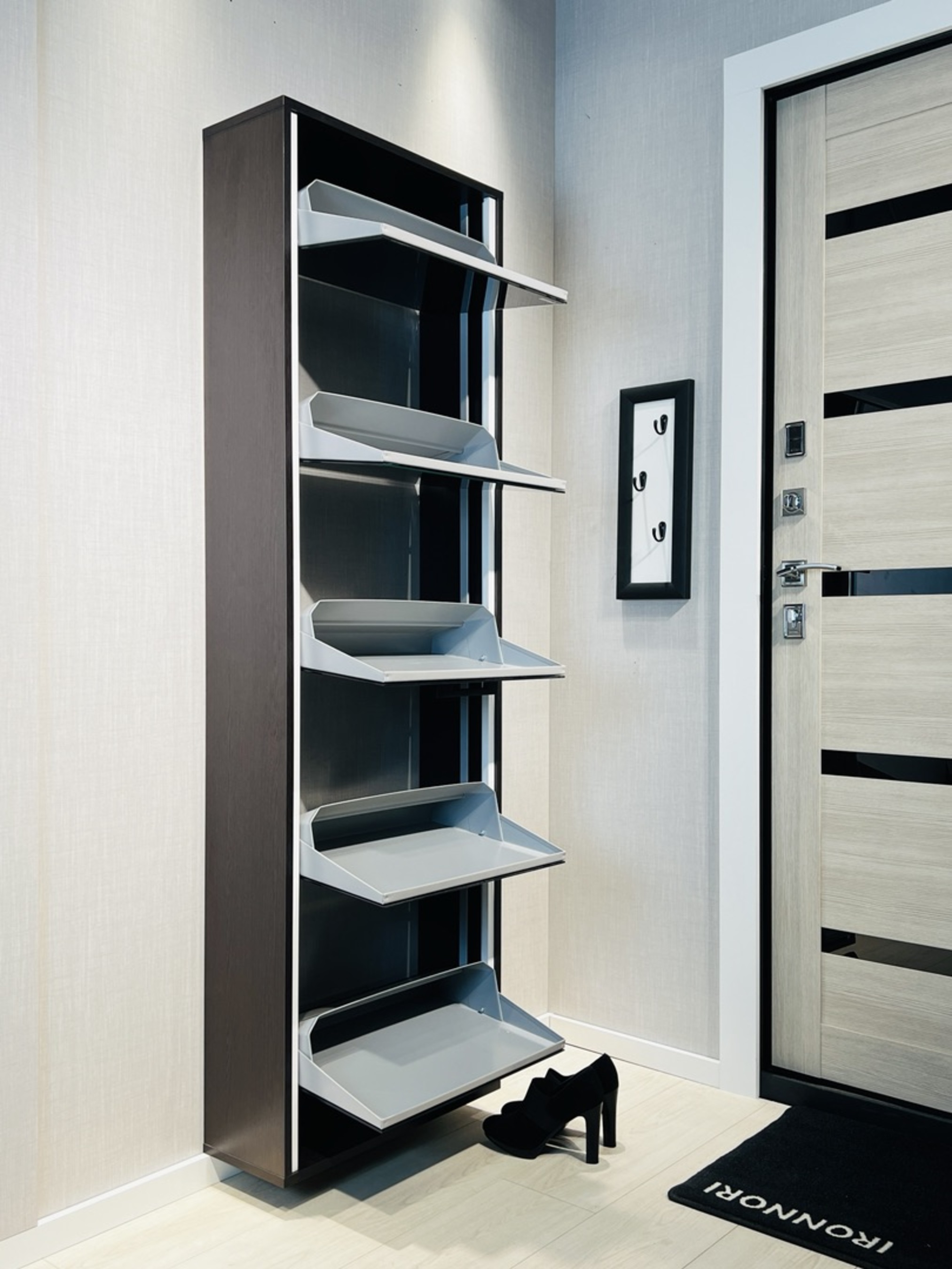 Модель ЛАЙТ подвесная, крепиться на стену за счет 4 дюпель-гвоздей на планках из ЛДСП. (при желании клиент может поставить шкаф для обуви на пол).