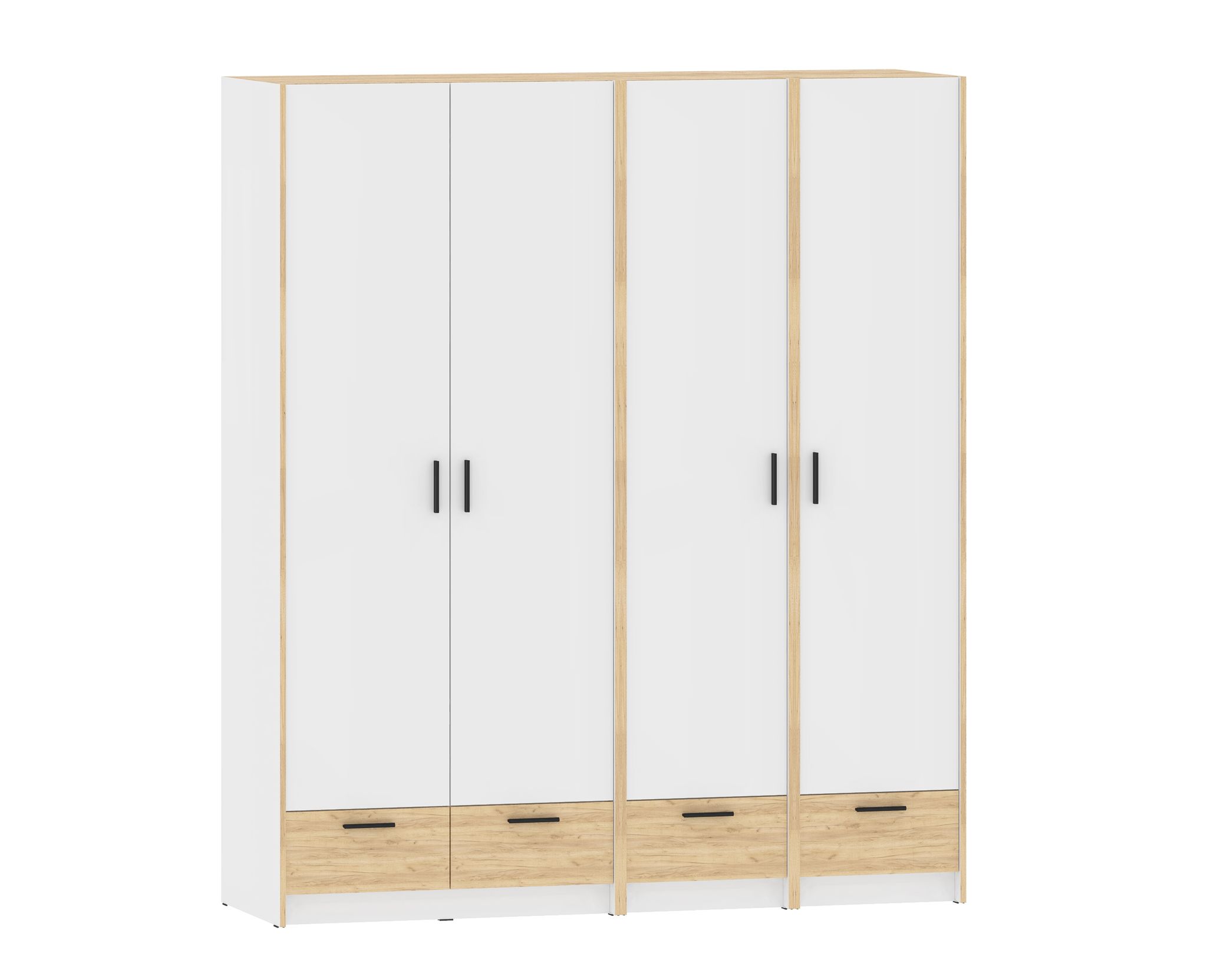 Распашной 2-х дверный шкаф для одежды оборудован штангой, полкой и 2-мя выдвижными ящиками на направляющих полного выдвижения. Шкаф-пенал оборудован полками и выдвижным ящиком на направляющих полного выдвижения.
