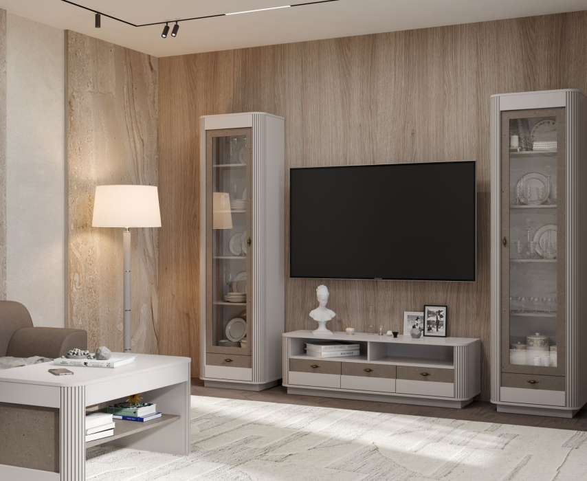 В набор входит : шкаф-витрина 34.06 -2шт., тумба ТВ 34.16, журнальный стол 34.20