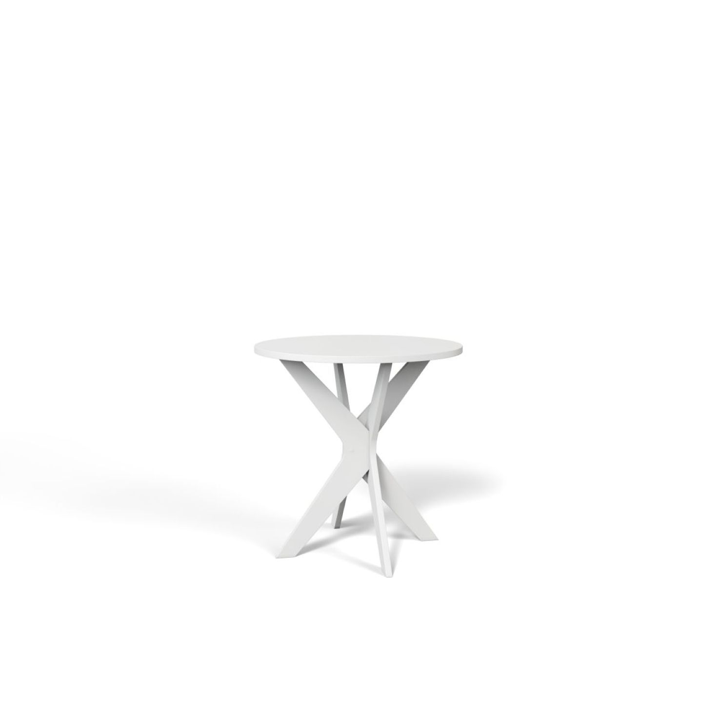 Модель имеет круглую столешницу и крестообразные опоры из ЛДСП 16 мм.