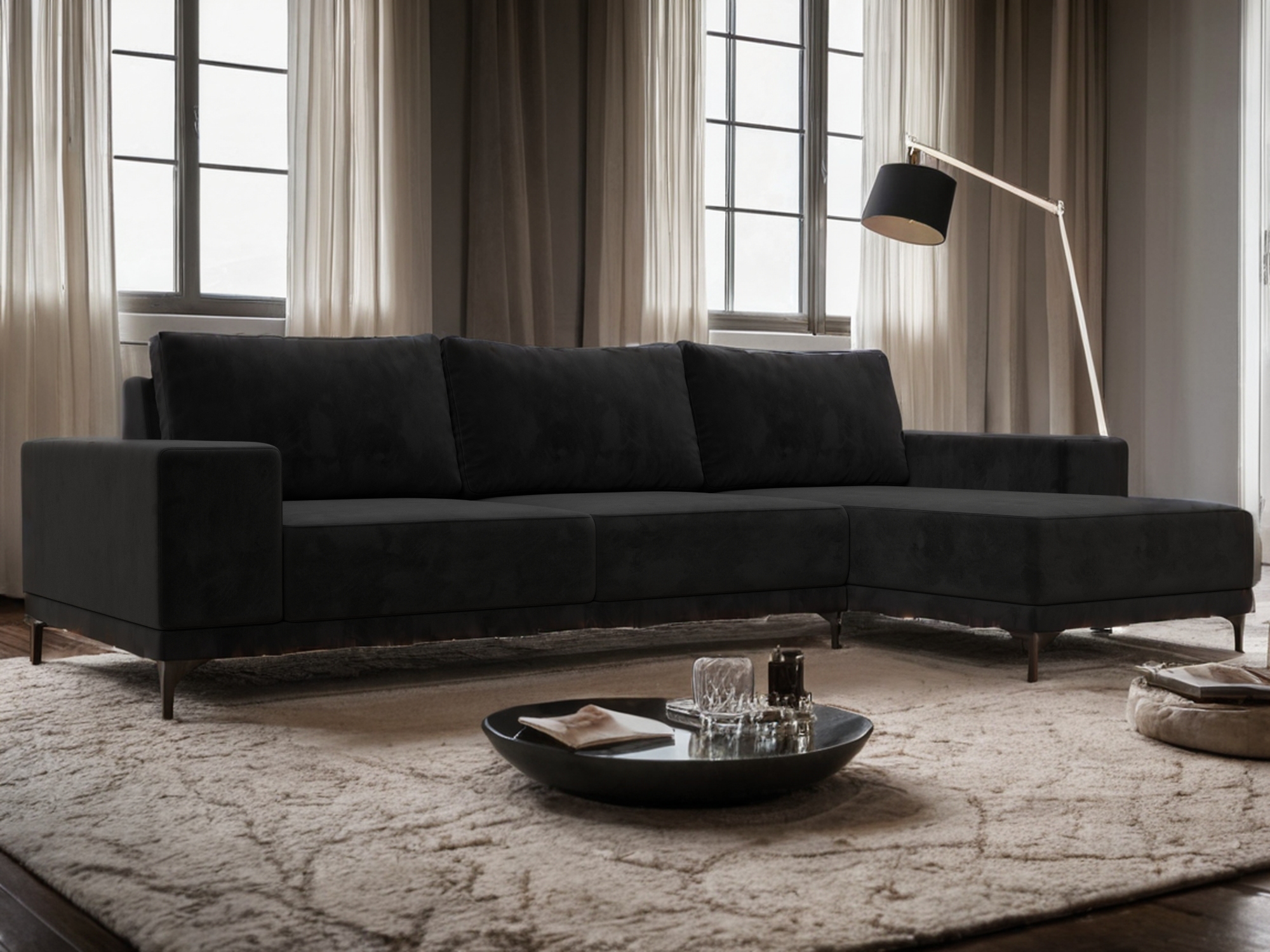Отзывы о Столплит Диван угловой Льюес правый, велюр Черный