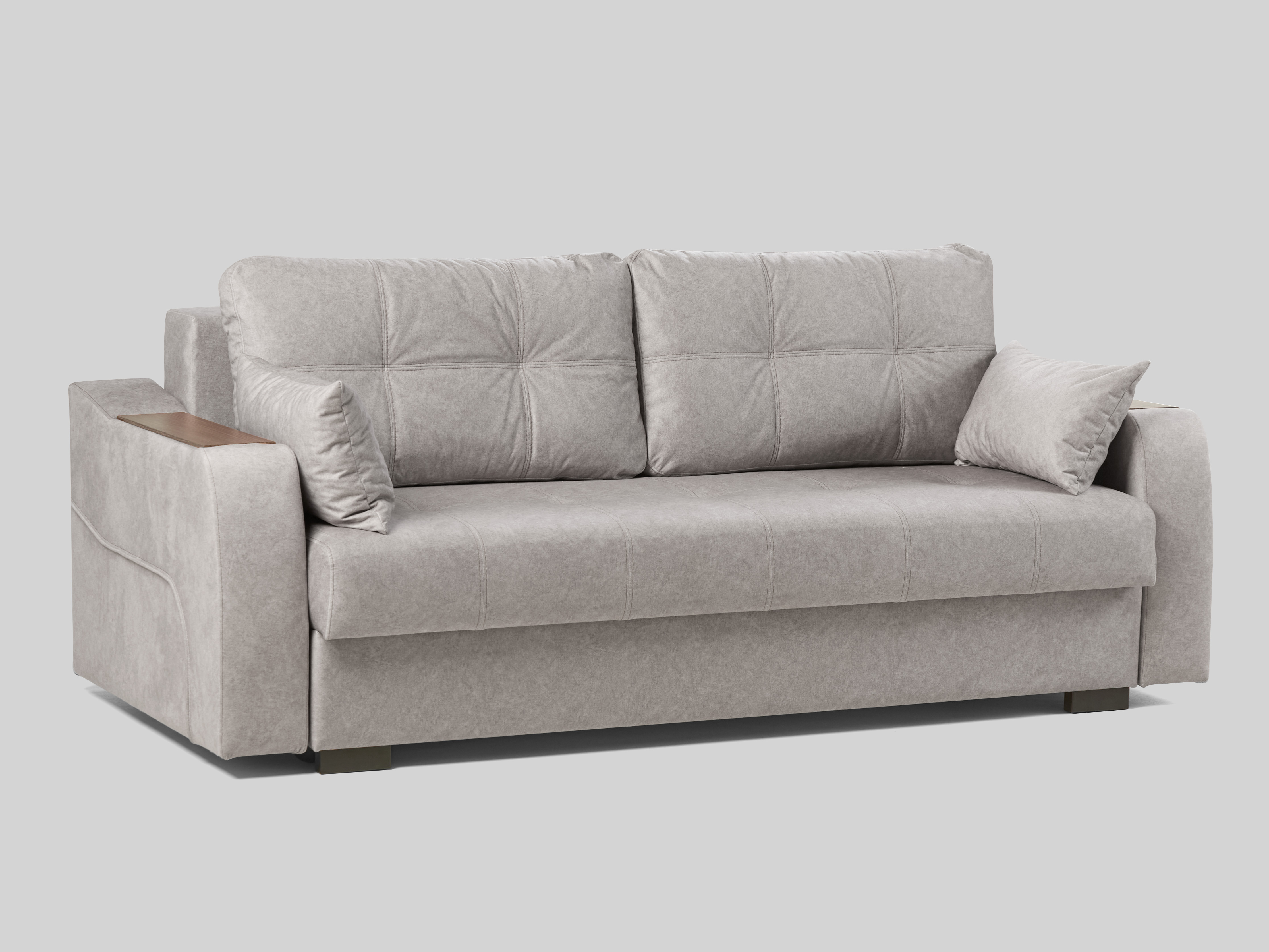 Механизм трансформации диванов пантограф — это еще один модернизированный вариант "еврокнижки", но с одним отличием — полностью отсутствуют ролики. Весь секрет в том, что здесь они не требуются, ведь сиденье дивана не выкатывается, а словно "вышагивает", стоит лишь немного поднять, затем спинка разворачивается на 90 градусов и преобразовывает широкую постель.