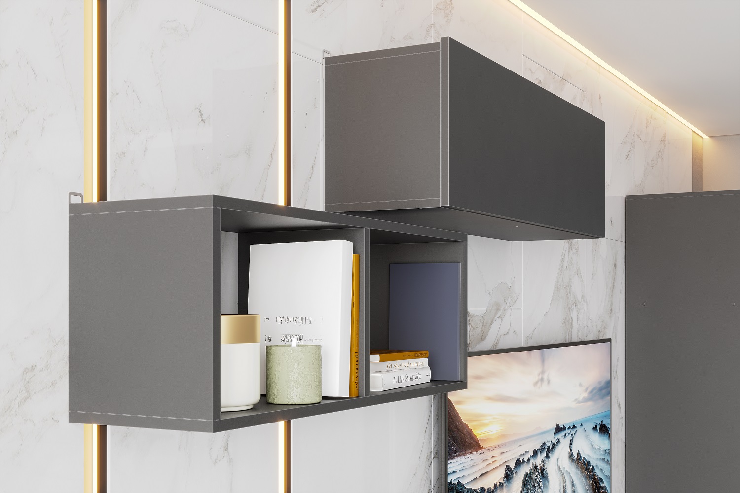 Навесной шкаф из серии Денвер в цвете графит идеально впишется в любой интерьер. Фасад выполнен из  ЛДСП, что придает ему дополнительную прочность и долговечность.