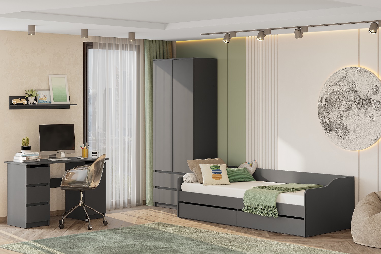 Полка навесная из модульной серии Денвер в цвете графит дополнит любой интерьер как в стиле лофт, так и в современном.