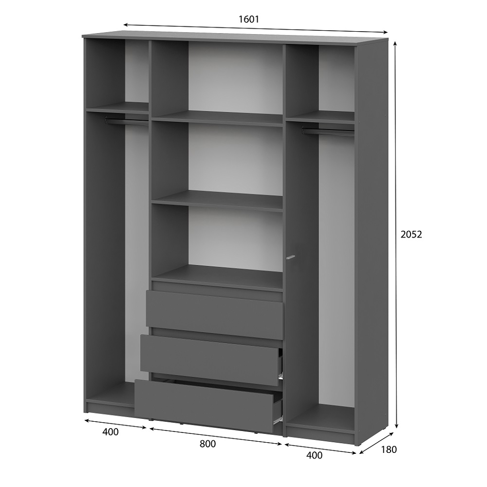 Спальный Денвер графит — это изысканное и стильное решение для обустройства вашей спальни. Цвет графит придает спальне строгий и изысканный вид. Он идеально подходит для создания современного интерьера. Основными элементами спальни Денвер графит являются кровать 160х200 см, две прикроватные тумбочки, шкаф и комод.