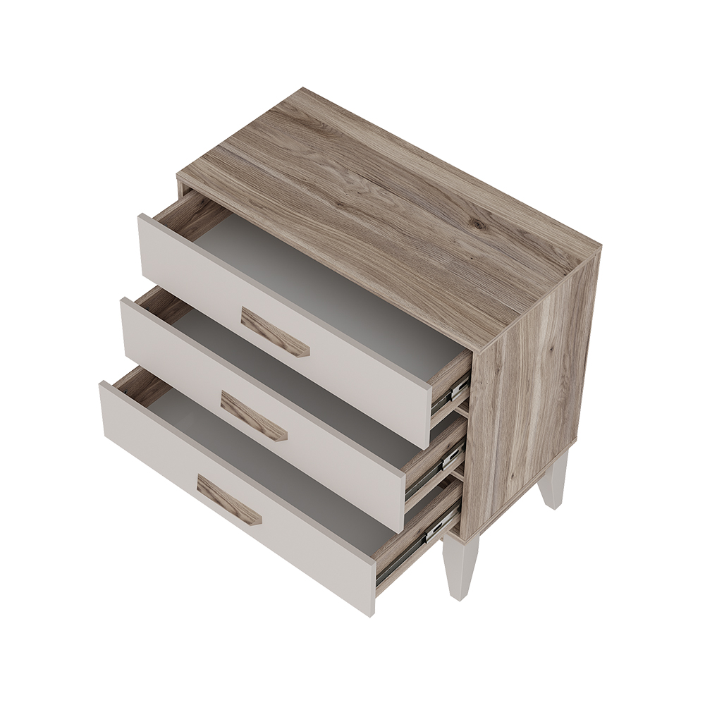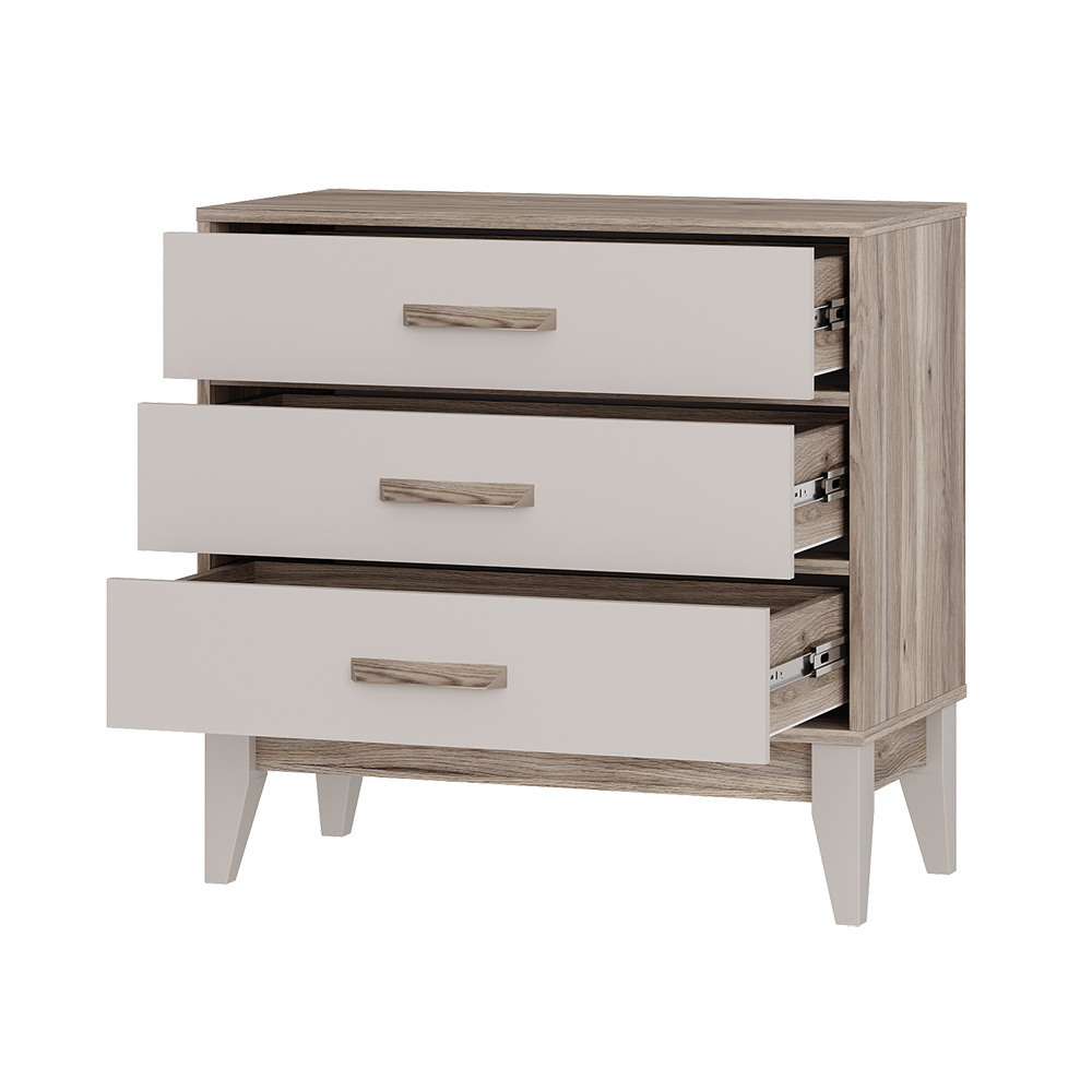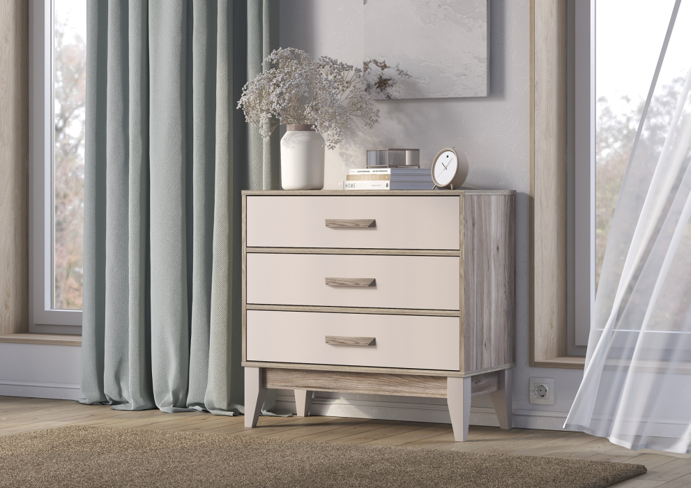 Комод Скандика оснащён тремя вместительными выдвижными ящиками с плавным механизмом открытия, на шариковых направляющих. Он подойдет и для спальни, и для гостиной, и для детской.